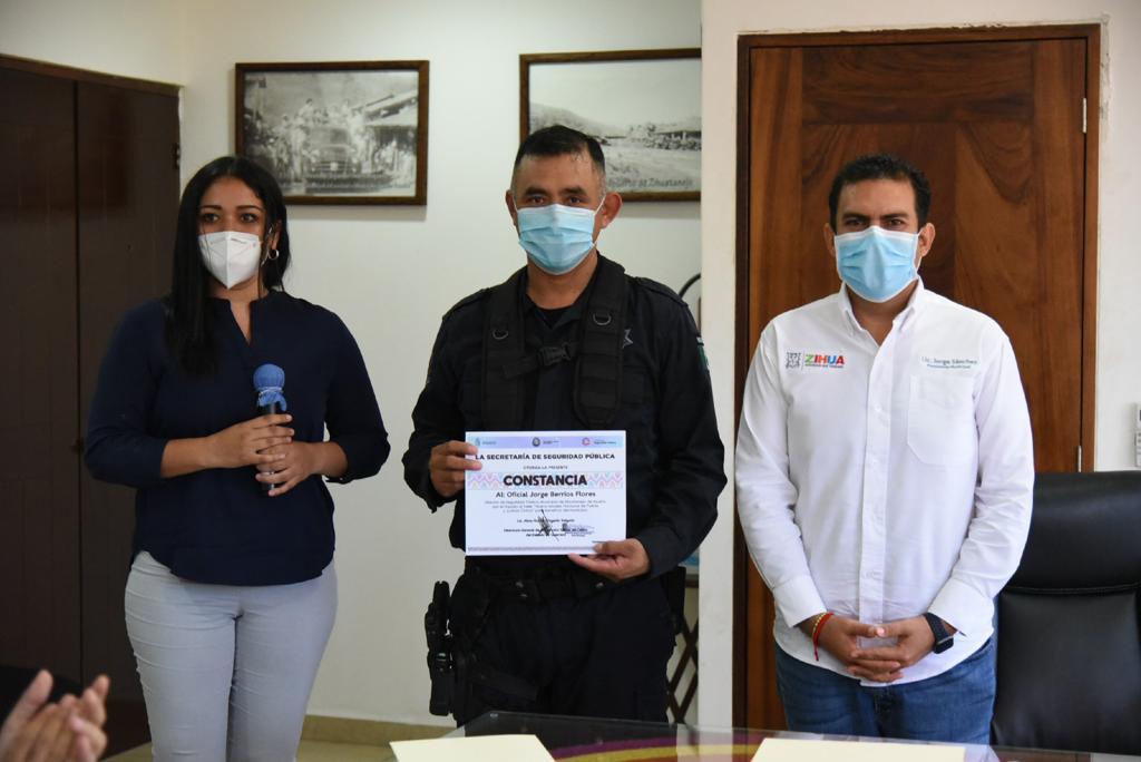 Cabe mencionar que Alma Roselín Órganiz Salgado, Directora General de Prevención Social del Delito de la Secretaría de Seguridad Pública del Estado, hizo entrega de una Constancia al Presidente Jorge Sánchez Allec por el impulso al taller Nuevo Modelo Nacional de Policía, Justicia Cívica para beneficio del municipio de Zihuatanejo de Azueta.