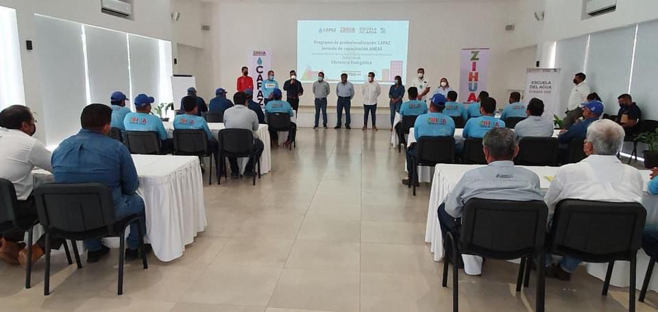 Zihuatanejo, Gro., 16 de Noviembre de 2021.- Al encabezar este martes el evento de inicio del curso taller Eficiencia Energética que por parte de la Asociación Nacional de Empresas de Agua y Saneamiento de México, A. C., (ANEAS), se impartió a personal de la Comisión de Agua Potable y Alcantarillado de Zihuatanejo (CAPAZ), el presidente Jorge Sánchez Allec subrayó la importancia de la capacitación que puedan adquirir los trabajadores del organismo operador, porque ello les permitirá prestar un servicio más eficiente a la población en general del municipio.