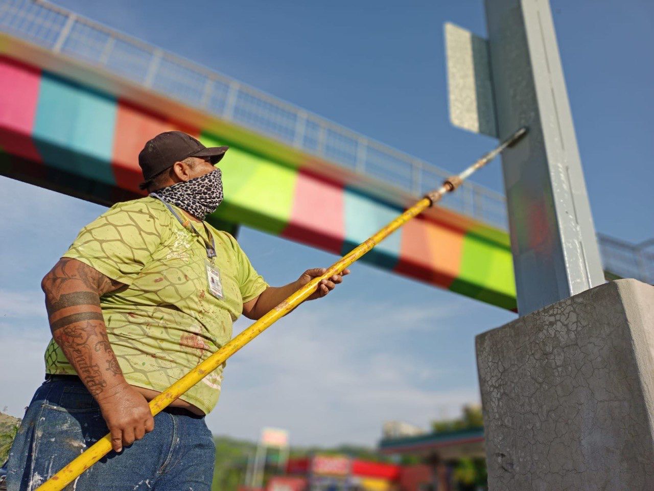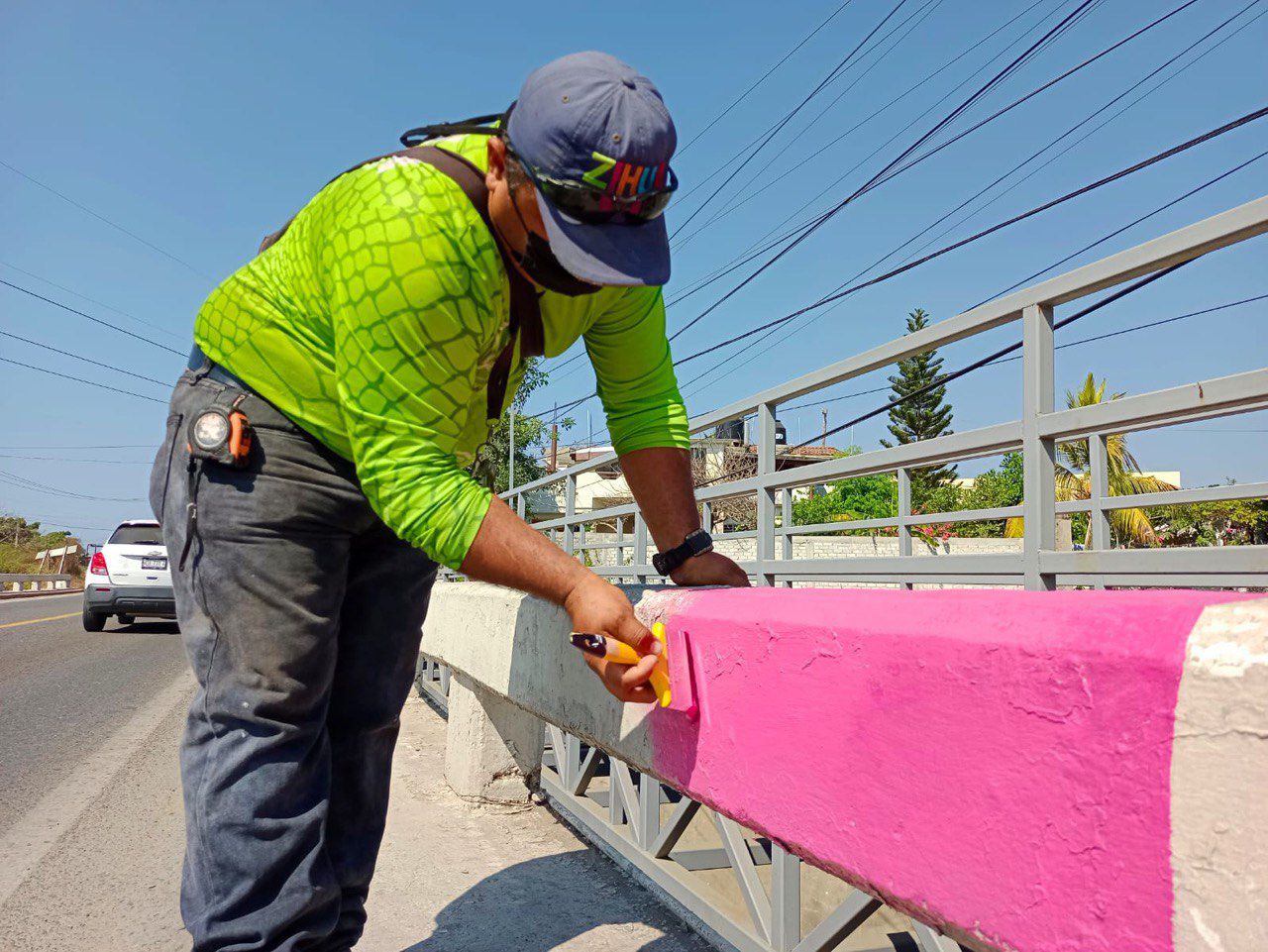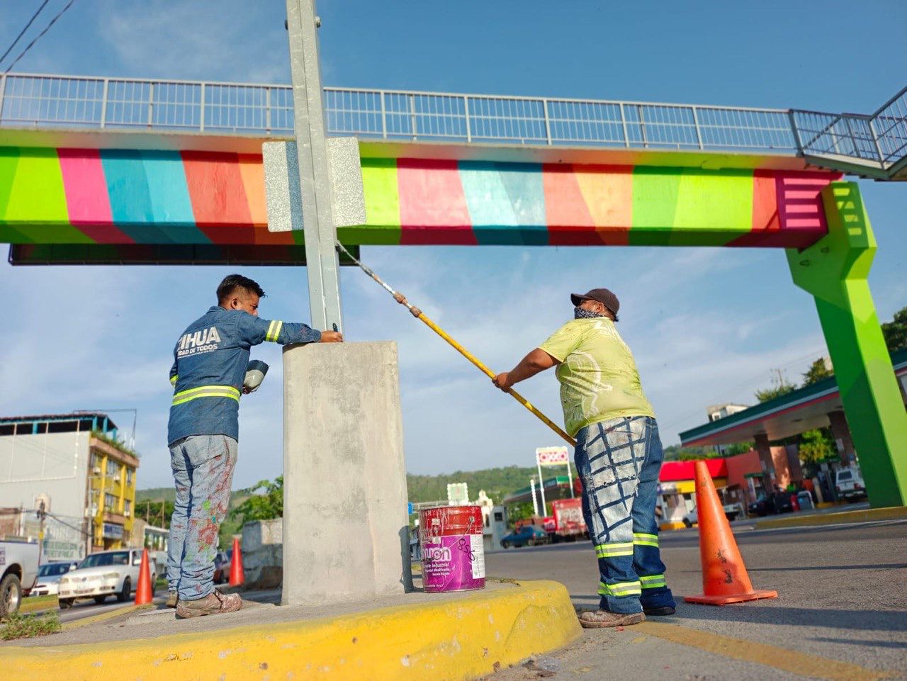 El programa Zihua al 100 está dando resultados a la brevedad y prueba de ello es que siguiendo las indicaciones del presidente Jorge Sánchez Allec, personal de Área Técnica de la dirección de Servicios Públicos tiene a Zihua como nunca antes de había visto. Se están llevando a cabo trabajos de remozamiento con pintura en banquetas, guarniciones, jardineras, postes metálicos, puentes peatonales y viales.