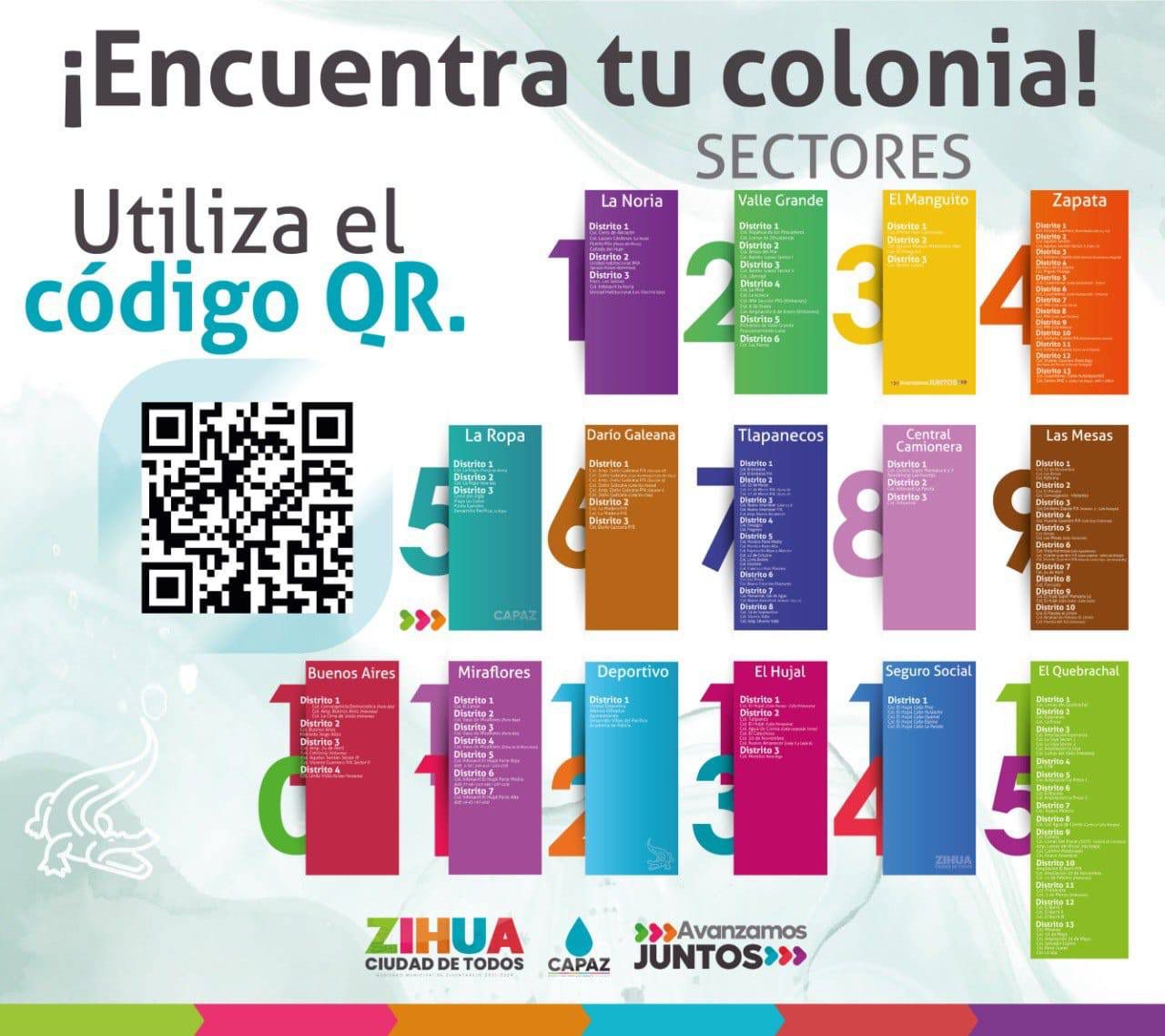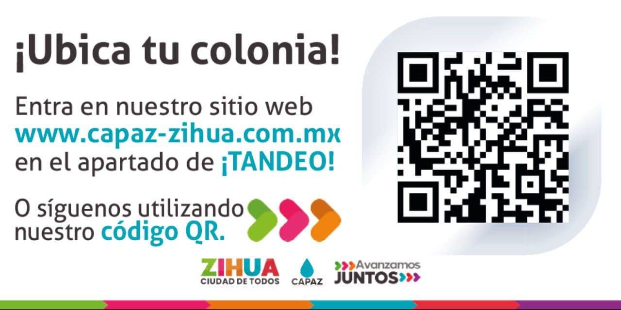 Asimismo detalló que como parte de las estrategias, se dará inicio con un nuevo programa de tandeo, que consiste en la realización de un padrón oficial de colonias distribuidas de acuerdo a su ubicación geográfica en sectores y distritos, información que todos los usuarios podrán consultar a través del código QR que estará apareciendo en el recibo de pago, asimismo podrán revisar de manera directa el padrón en la página web www.capaz-zihua.gob.mx, apartado "Tandeo", en la pagina oficial de Facebook "Comisión de Agua Potable y Alcantarillado de Zihuatanejo" y otros medios impresos dentro de las instalaciones centrales de la dependencia.