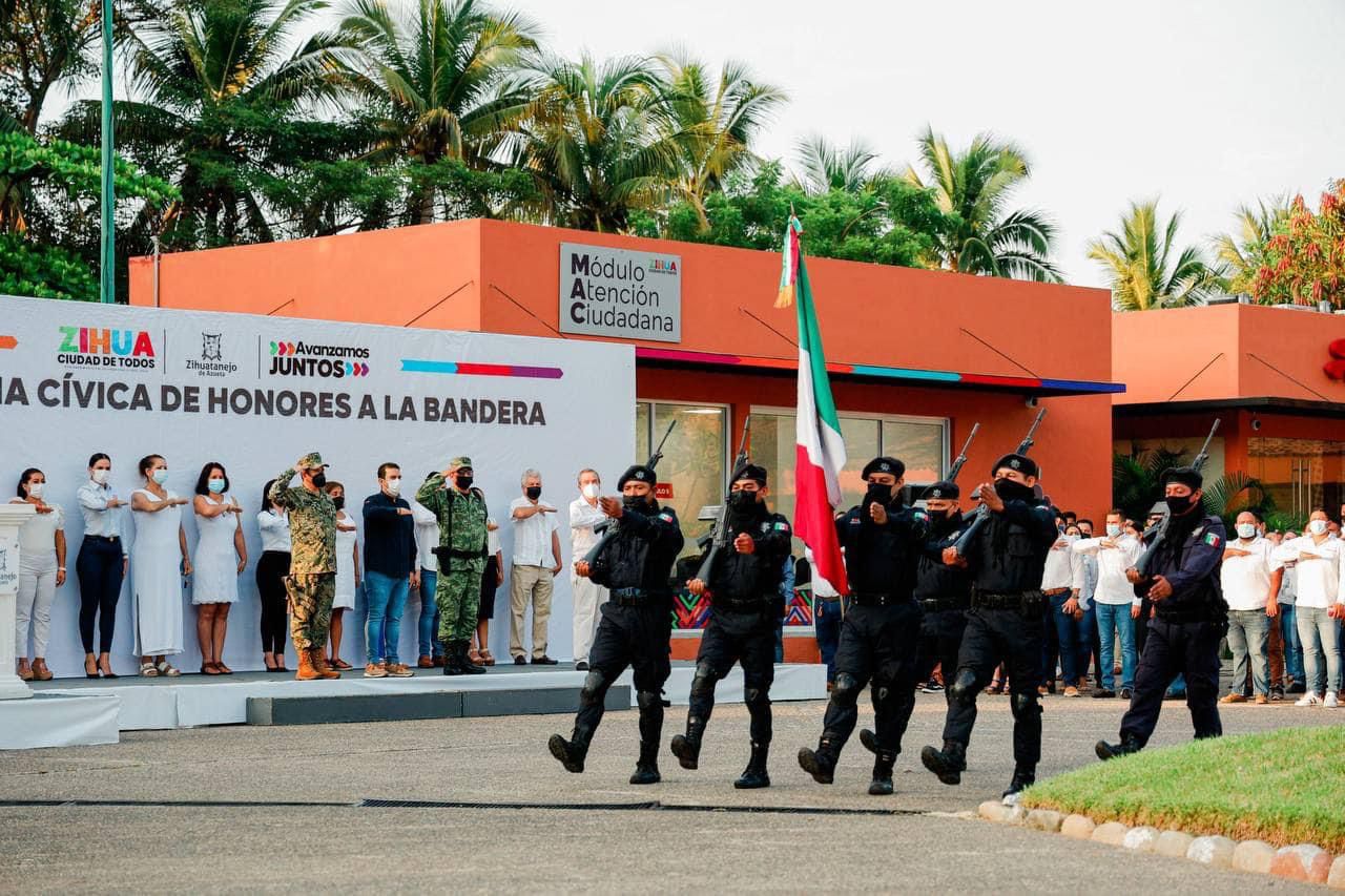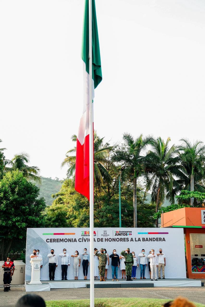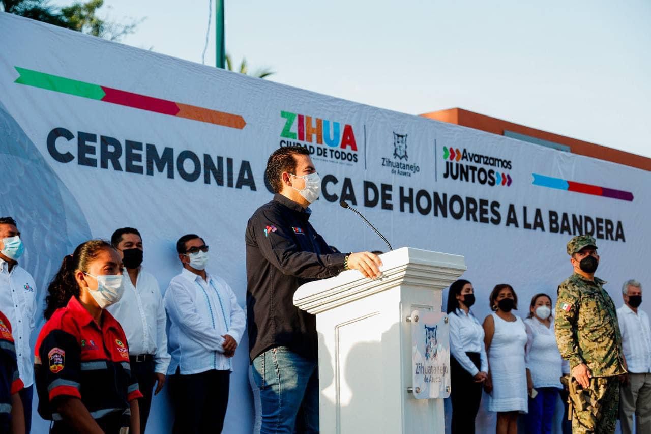 Al encabezar este lunes la ceremonia cívica de Honores a la Bandera Nacional correspondiente al mes de agosto de 2022, que se desarrolló en la explanada municipal y a la que asistieron autoridades militares y del Estado, la presidenta honoraria del DIF Zihuatanejo, Lizette Tapia Castro, integrantes del Cabildo, funcionarios y trabajadores del Ayuntamiento, el presidente Jorge Sánchez Allec afirmó que “la salud de los habitantes del municipio es y seguirá siendo una de nuestras prioridades”.
