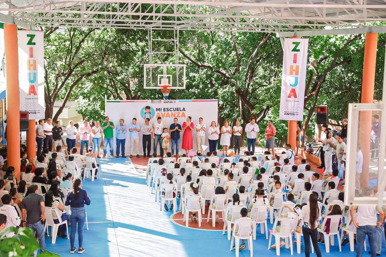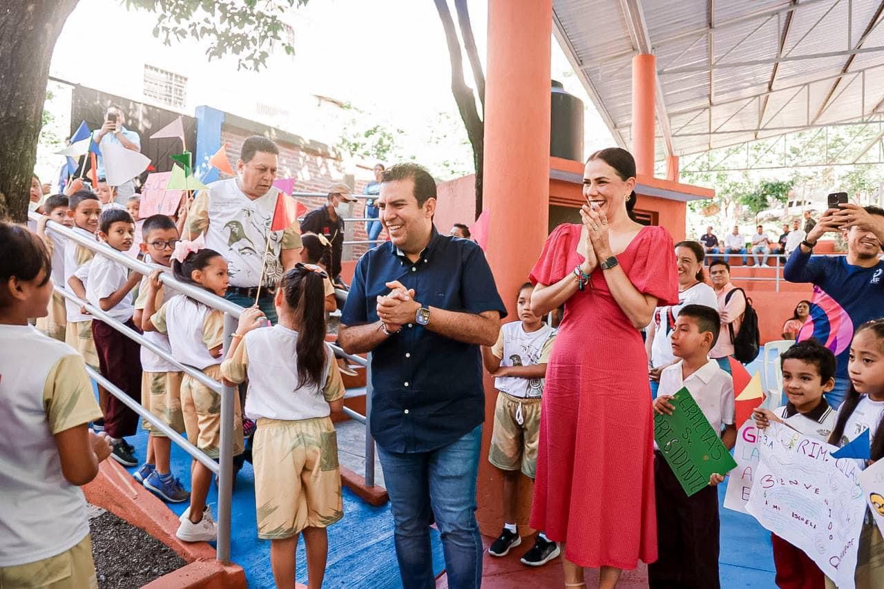 Ante las autoridades educativas ahí presentes y otros asistentes al evento, se dirigió a los alumnos para remarcar que “estas cosas que hacemos en favor de las escuelas valen mucho la pena, porque de verdad cambiamos y mejoramos las condiciones educativas con “este tipo de obras de infraestructura”.