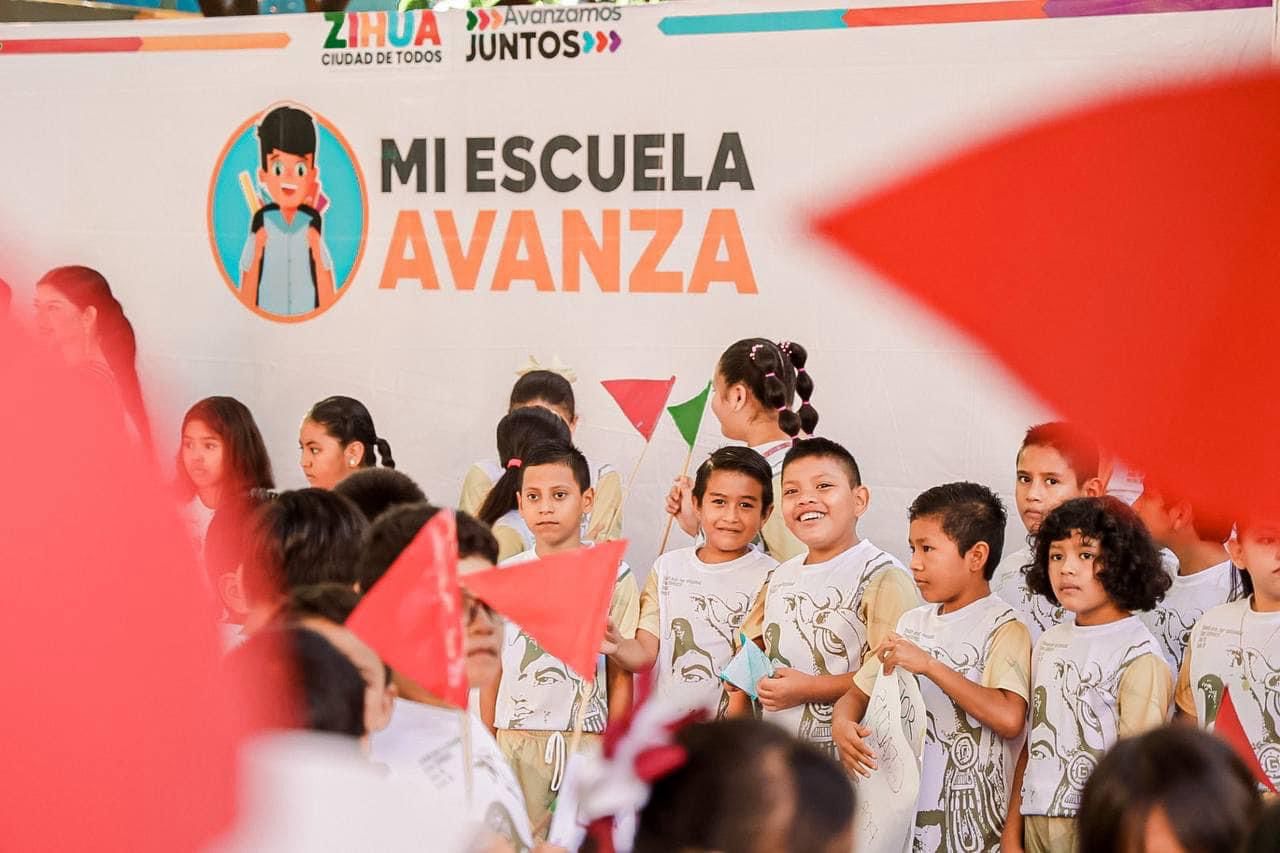 En su mensaje, el alcalde Jorge Sánchez Allec empezó por enfatizar que para que las niñas y los niños del municipio puedan disfrutar del derecho a tener una escuela bonita, “desde el gobierno municipal estamos trabajando muy fuerte para mejorar las condiciones educativas en Zihuatanejo".
