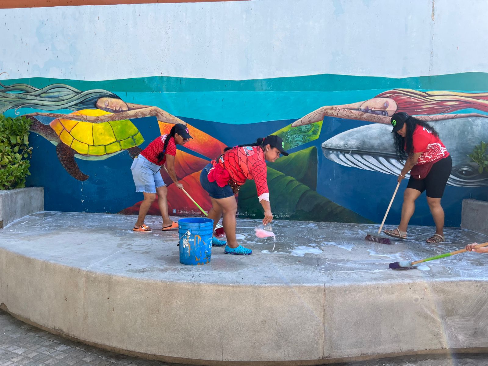 Luna Bravo mencionó que entre las diversas tareas de limpiezas que se realizan se encuentran el lavado de jardineras, pepena, chapona, remozamiento con pintura en diferentes áreas, desbroce de maleza, barrido manual y la recolección de residuos sólidos, estos apoyados por las distintas áreas de esta dirección, en los principales puntos y accesos turísticos como en Paseo del Pescador, Mirador de Ixtapa, Muelle Principal, Acceso a Playa Linda, Playa La Ropa y Bulevares.
