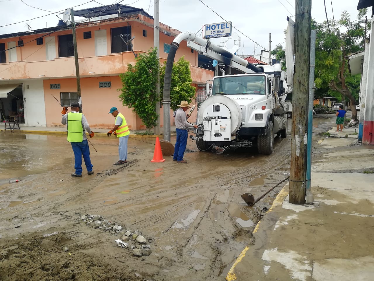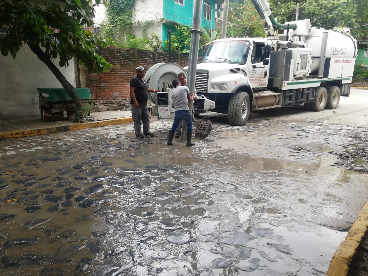 Pie de foto.- La Comisión de Agua Potable y Alcantarillado de Zihuatanejo (CAPAZ) continúa trabajando en la limpieza de red sanitaria de los puntos críticos de azolve de material pétreo arrastrado por la tormenta Narda, despejando hasta el momento más de 41 pozos de visita y 1800 metros líneales de colector sanitario en las colonias Cuauhtémoc y Vicente Guerrero; avenidas Morelos, La Boquita, Benito Juárez, Siervo de la Nación y calle Adelitas.