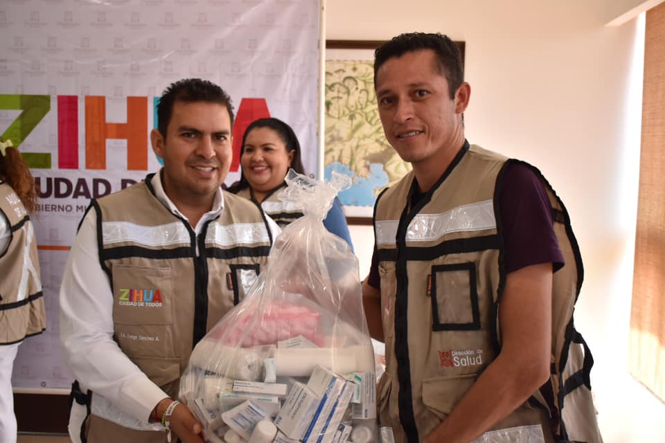 Zihuatanejo, Gro., 31 de octubre de 2019.- Como parte de las acciones encaminadas a procurar el bienestar de las familias de Zihuatanejo de Azueta, el presidente Jorge Sánchez Allec encabezó este jueves la entrega de medicamentos y otros apoyos a las 13 Casas de Salud que existen en el municipio, además de ofrecer que a finales del presente año los auxiliares de dichas estancias tendrán un incremento salarial razonable por parte del Ayuntamiento.