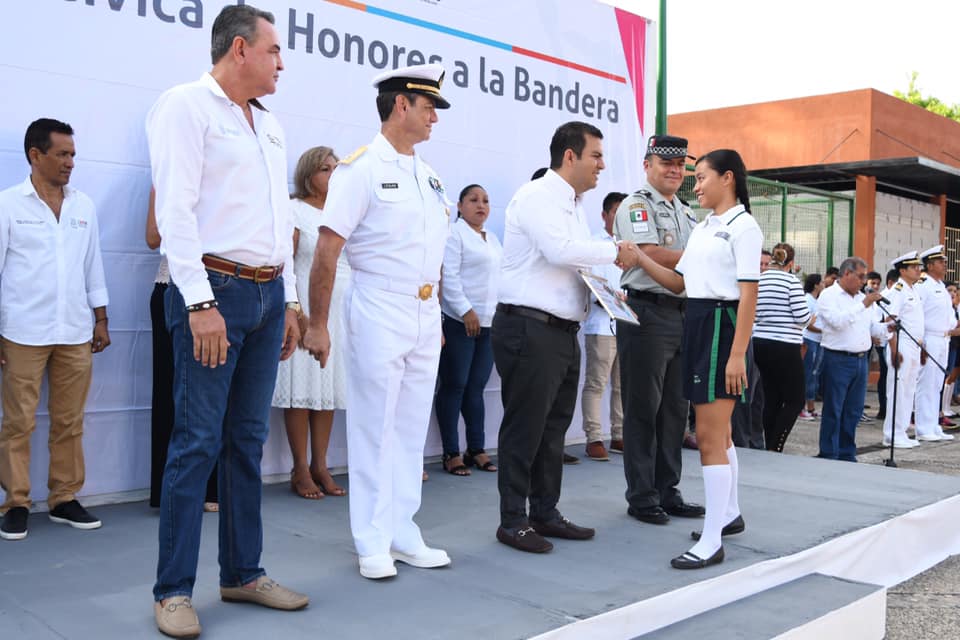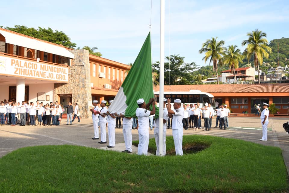 En la ceremonia de honores a la Bandera, desarrollada como siempre en la explanada municipal, donde estuvieron presentes la presidenta honoraria del DIF Zihuatanejo, Lizette Tapia Castro; el comandante del Sector Naval, contralmirante Carlos Eduardo L’Eglise Escamilla; el delegado del gobierno del estado en la Costa Grande, Juvenal Maciel Oregón, entre otras autoridades, el primer edil hizo un resumen de las principales acciones que durante el pasado mes de octubre se realizaron en colonias y comunidades del municipio, destacando las Brigadas Médico Asistenciales.