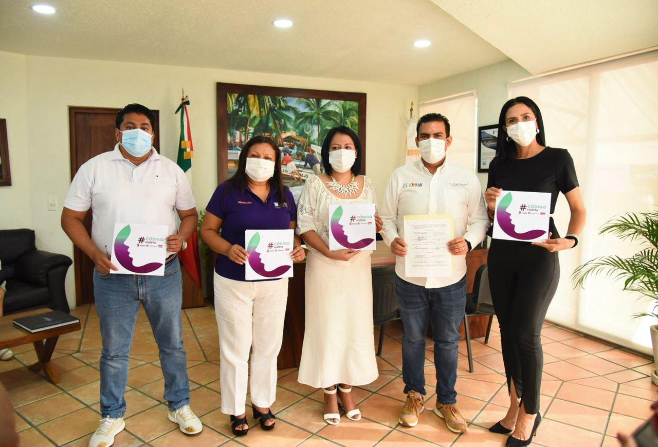 El presidente Jorge Sánchez Allec, firmó el Código Violeta con Olivia Hidalgo Domínguez, Subsecretaria de Coordinación, Enlace y Atención de Organizaciones Sociales, quien reconoció el trabajo que viene haciendo el gobierno municipal en favor de la mujer. En su intervención el presidente Jorge Sánchez Allec dijo seguirán creando mecanismos para erradicar la violencia de género, para cuidar y proteger a las mujeres de Zihuatanejo.