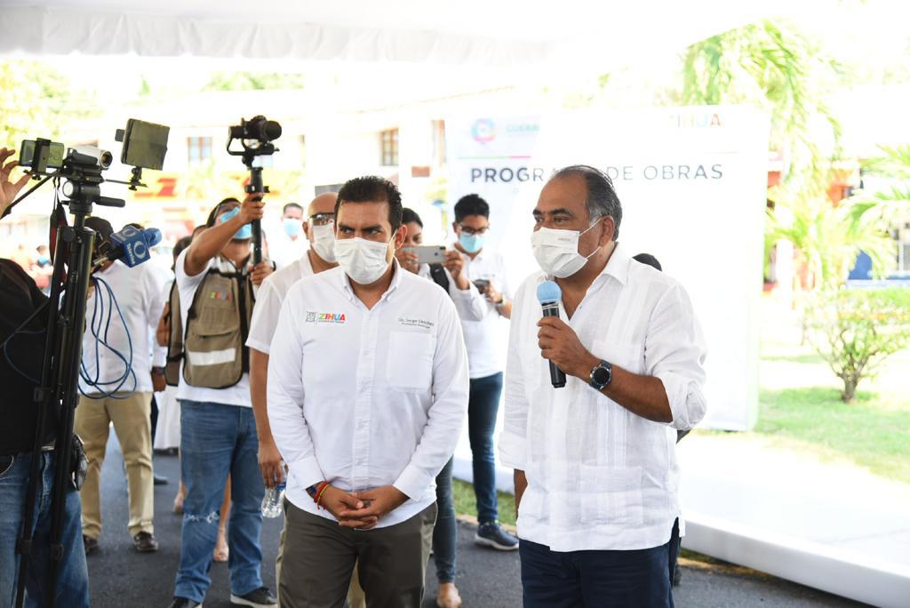 En gira de trabajo por Zihuatanejo, el gobernador Héctor Astudillo Flores junto al presidente Jorge Sánchez Allec, pudo constatar los diferentes trabajos que se están realizando en este destino de playa, donde se realizó en la playa Principal la conferencia de prensa donde informaron sobre el Covid-19 . “Estamos transformando Zihuatanejo, una vez más le agradecí su disposición y apoyo incondicional al gobernador Héctor Astudillo Flores” expresó el alcalde Jorge Sánchez.