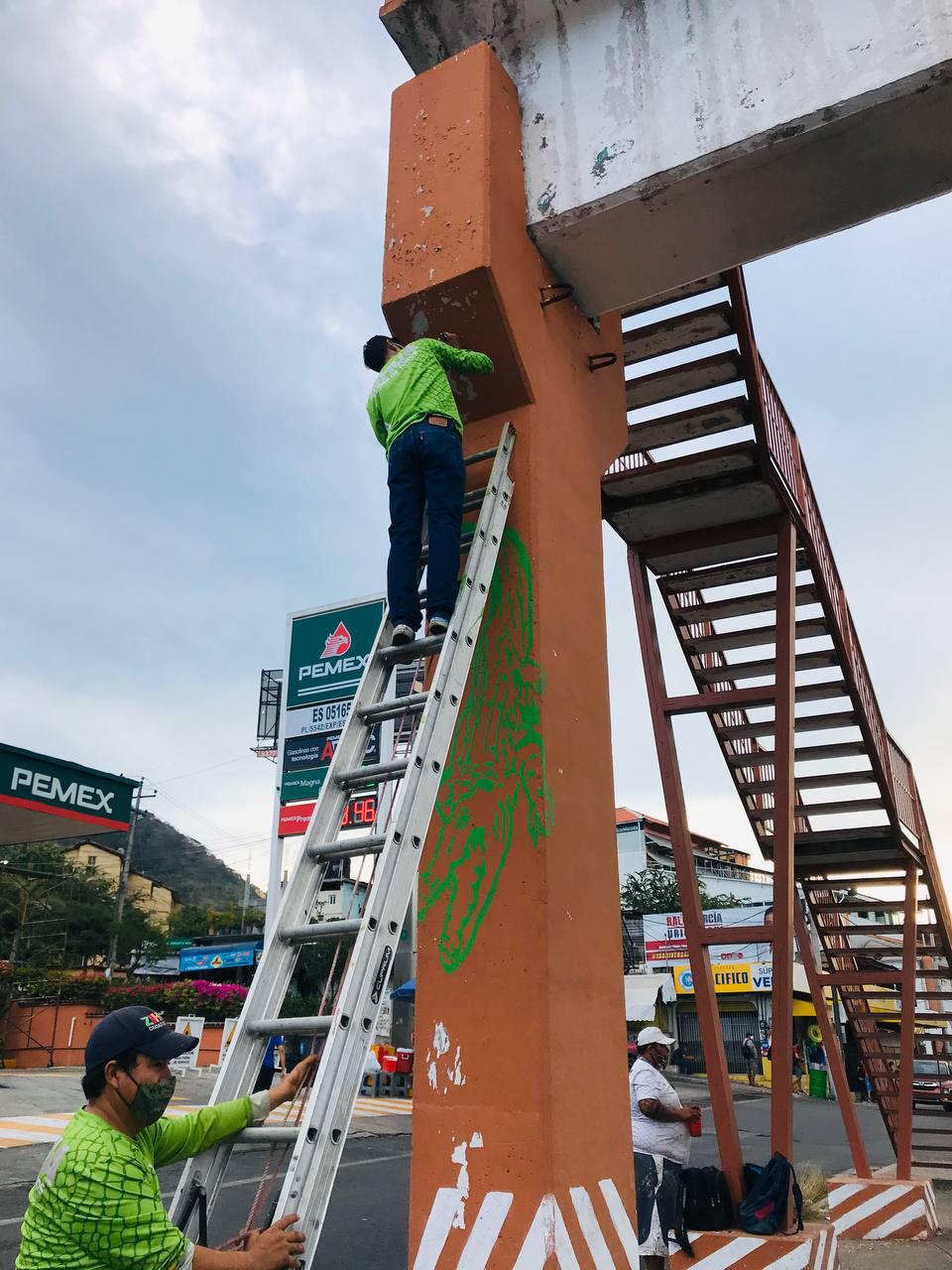 Con la finalidad de contar con vialidades en buena imagen, el gobierno municipal que preside Jorge Sánchez Allec a través de la dirección de Servicios Públicos dio inicio con los trabajos de remozamiento con pintura en guarniciones y columnas del puente en la colonia El Limón.