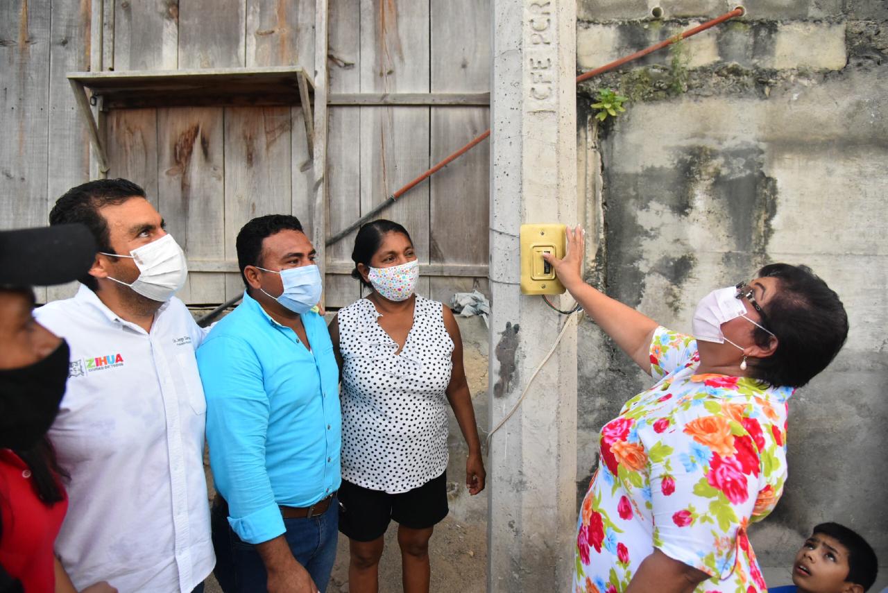 Siendo la electrificación número 32 en lo que va de la administración municipal, el presidente Jorge Sánchez encabezó el acto inaugural en la colonia Paraíso Limón de esta obra que se suma a una más que se han realizado en esta zona de Zihuatanejo y con la cual se está abatiendo el rezago en materia de electrificación.