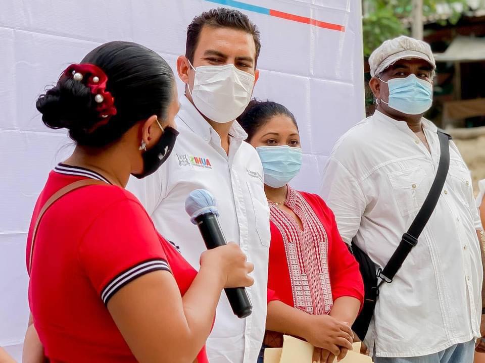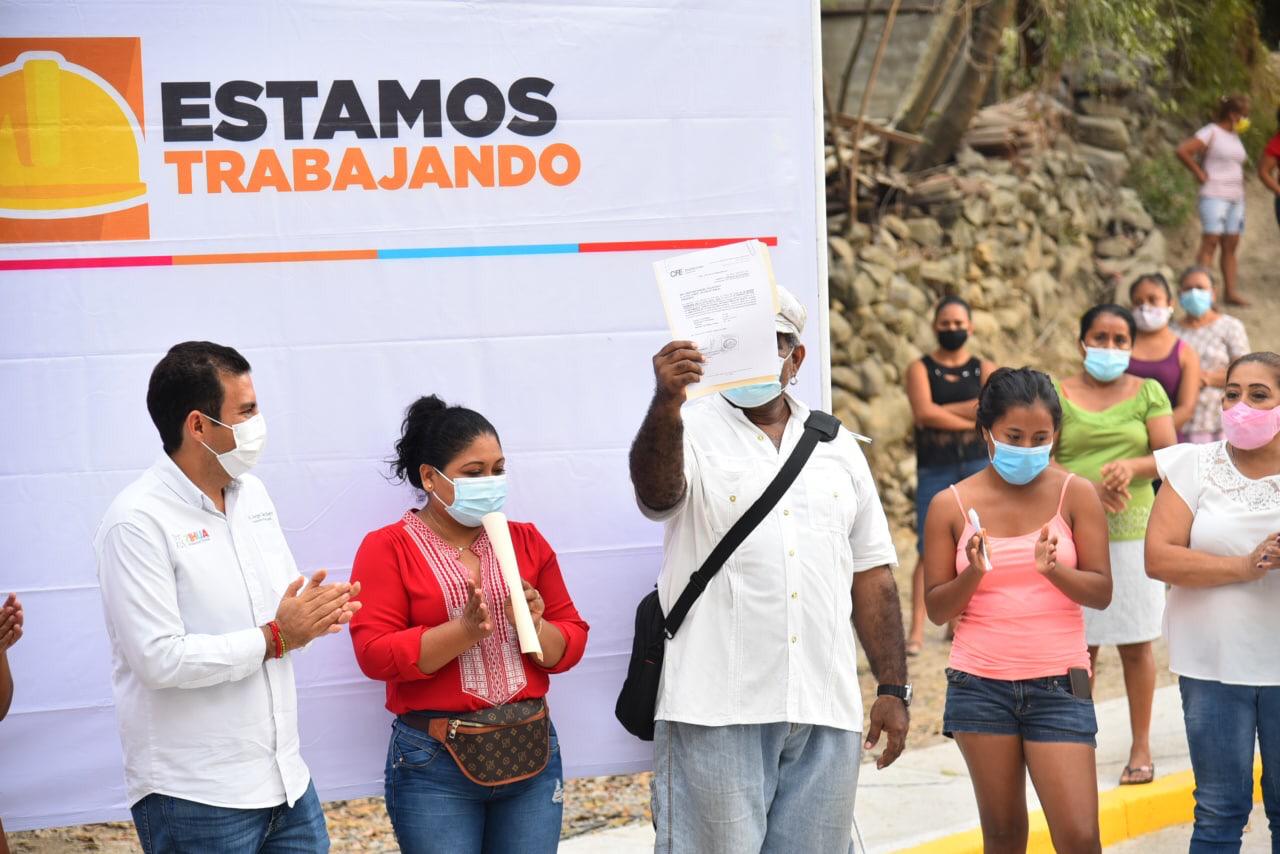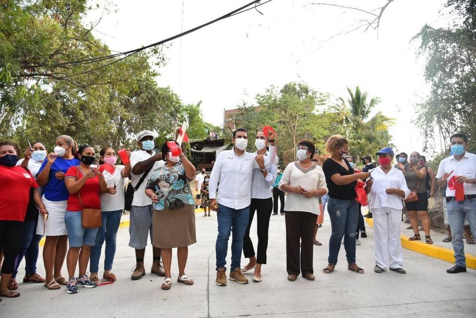 Gobierno del presidente Jorge Sánchez cumple con la colonia Azteca y entrega calle pavimentada y electrificación.