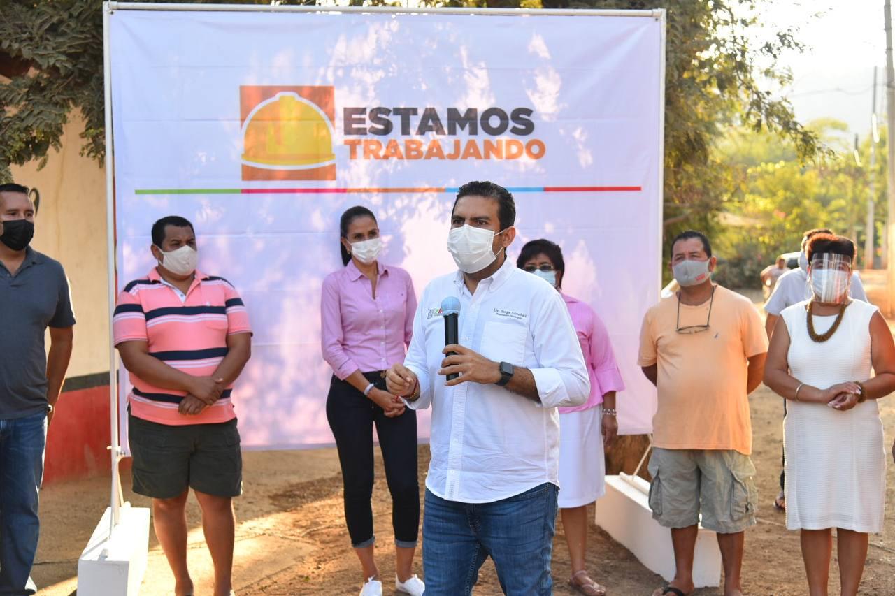 El presidente de Zihuatanejo Jorge Sánchez encabezó el arranque de la pavimentación del camino que conduce a la playa