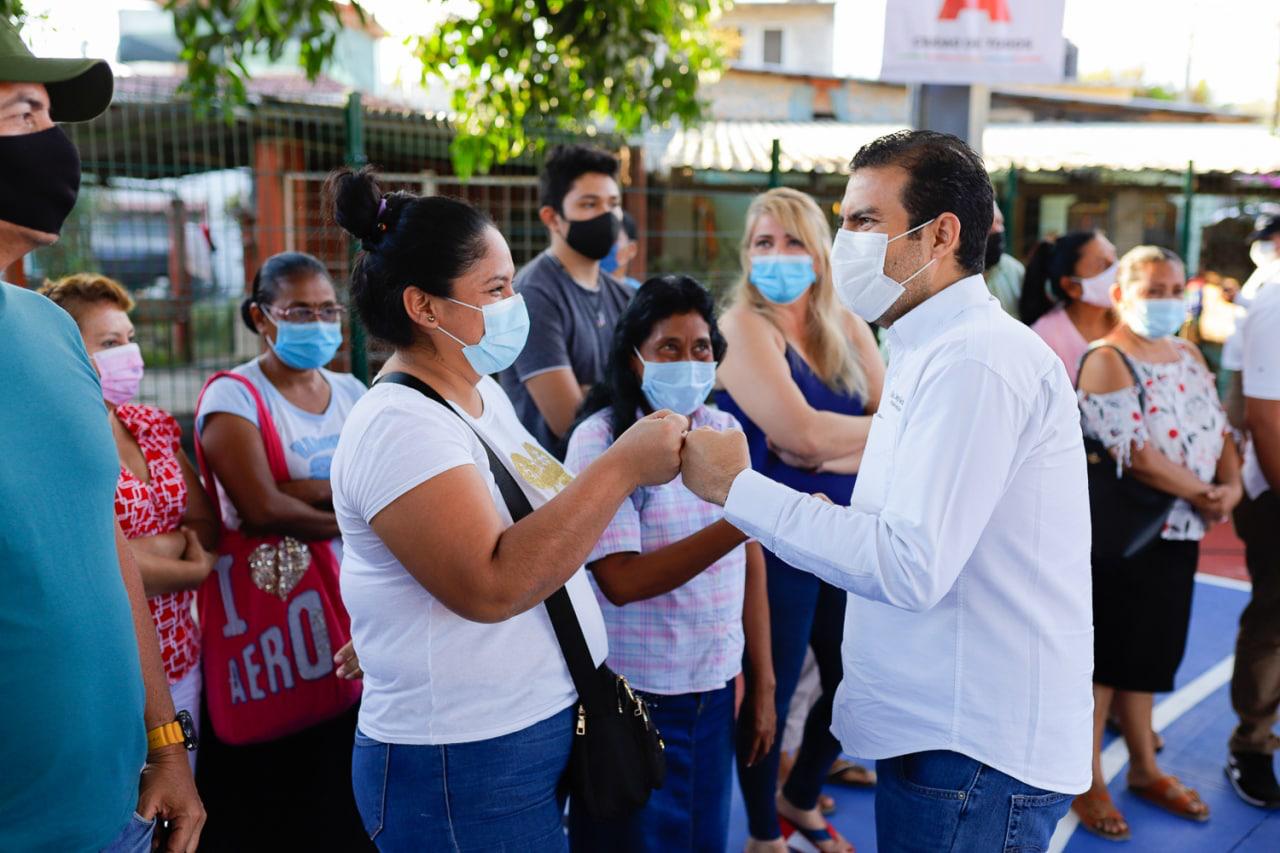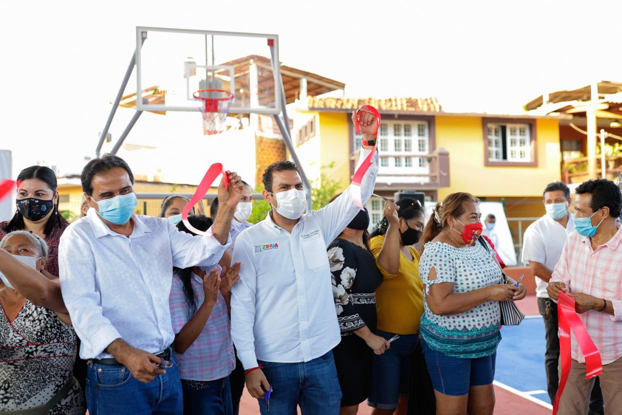 Zihuatanejo, Gro. A 15 de febrero del 2021.- Un recibimiento muy significativo por parte de los colonos fue el que tuvo el Presidente Municipal Jorge Sánchez acompañado del diputado Cervando Ayala, todo esto bajo los protocolos de higiene para llevar a cabo la inauguración del espacio público rehabilitado en la colonia Morelos y la pavimentación de su circuito perimetral.