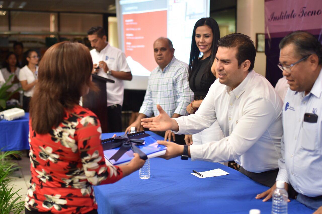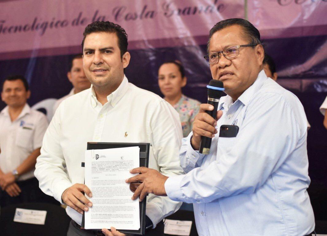 Zihuatanejo, Gro.- El presidente municipal Jorge Sánchez Allec, firmó el convenio de colaboración entre el Ayuntamiento de Zihuatanejo de Azueta y el Instituto Tecnológico de la Costa Grande (ITCG), además hizo entrega de un reconocimiento por el 30 aniversario de dicha institución educativa.