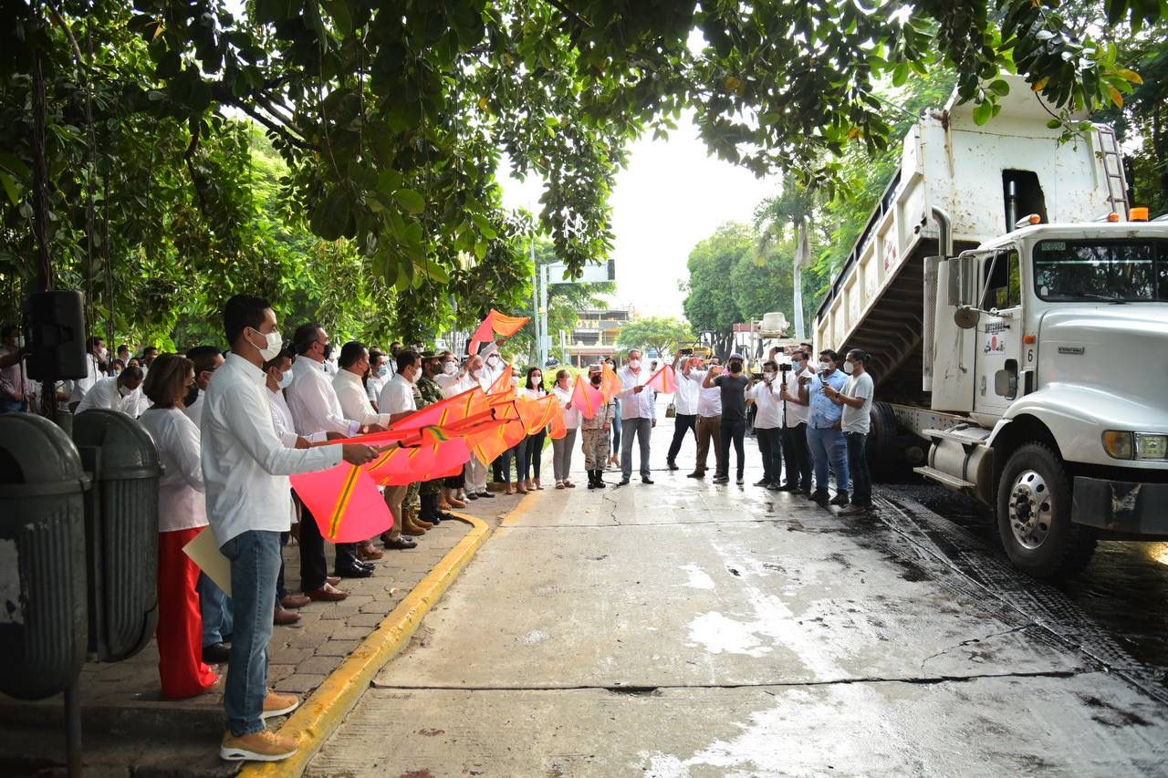 Zihuatanejo, Gro., 04 de Octubre de 2021.- En un esfuerzo por seguir mejorando la infraestructura de Zihuatanejo, que ha contado con el apoyo del gobierno del estado que encabeza Héctor Astudillo Flores, el presidente Jorge Sánchez Allec, junto con su esposa Lizette Tapia Castro e integrantes del Cabildo, puso en marcha este lunes los trabajos de pavimentación con carpeta asfáltica de la avenida Morelos, desde la Fuente del Sol hasta la calle 5 de Mayo del puerto.