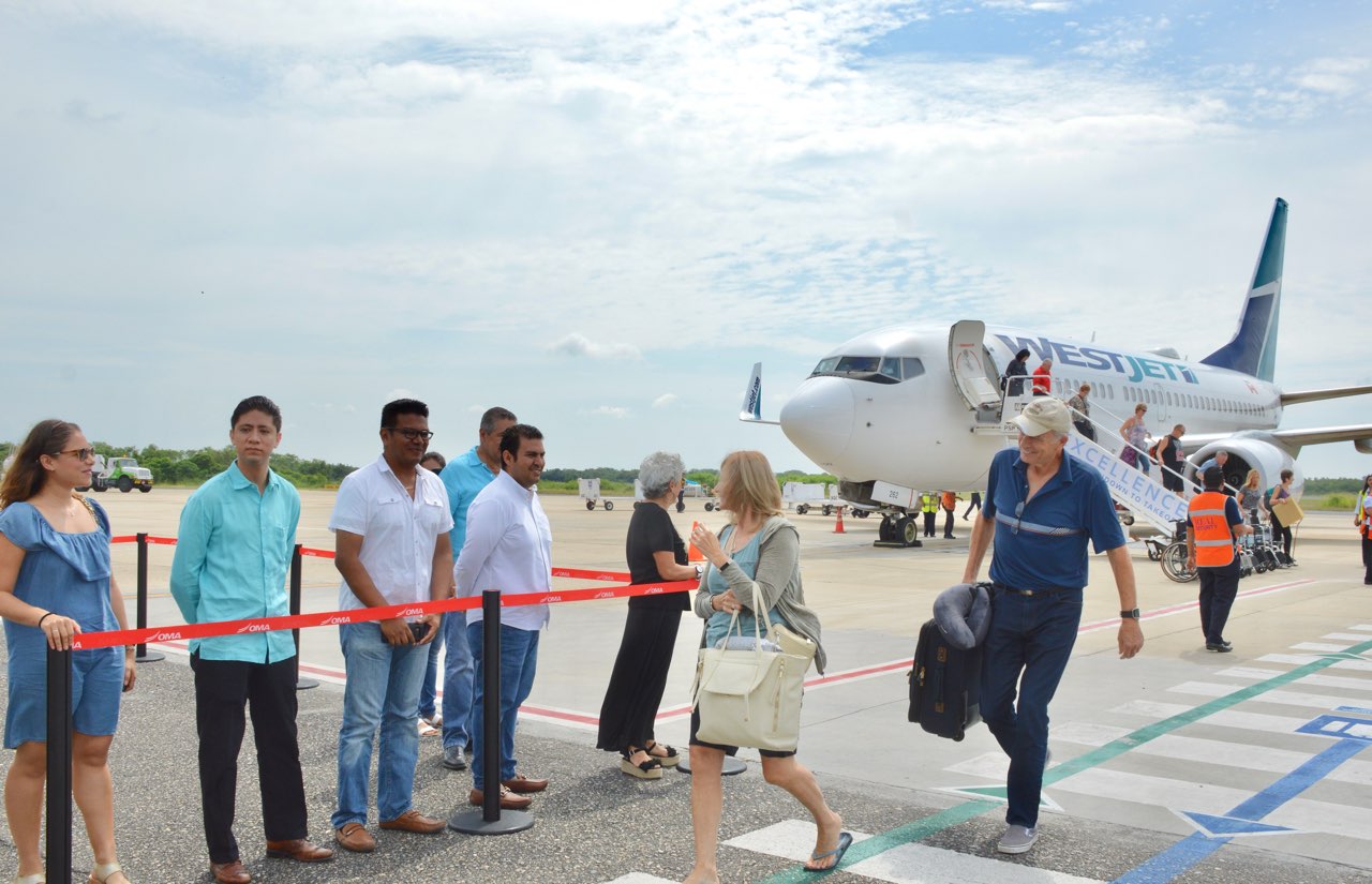 El presidente municipal, Jorge Sánchez Allec dio la bienvenida al vuelo de la aerolínea West Jet procedente de Calgary, Canadá con 144 pasajeros. Acompañaron a la recepción de este segundo vuelo de la temporada invernal, el regidor de Turismo, Amador Campos Alemán; el director de Turismo municipal, Jesús Gallegos Galván; el delegado de la Sectur en Costa Grande, Sanín Serna Nájera; Pedro Castelán Reina, director de la OCVIZ y Sandra Almada y Alatorre, presidenta de la Asociación de Hoteles Ixtapa-Zihuatanejo.
