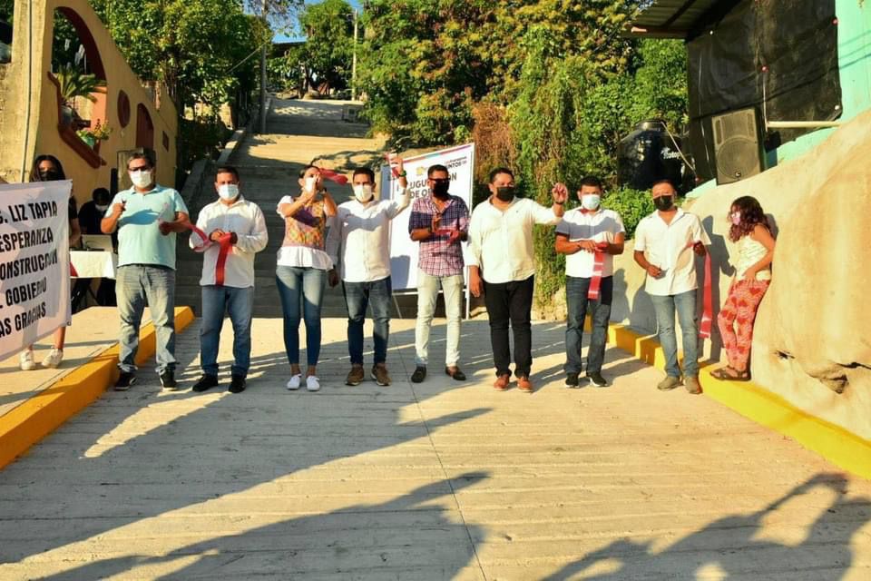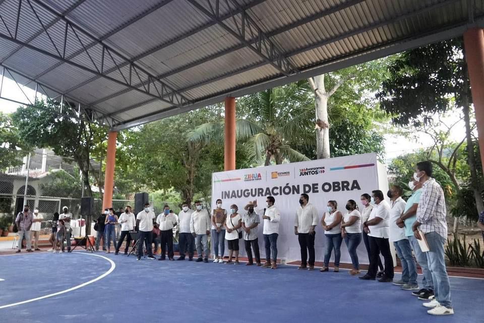 El presidente Jorge Sánchez Allec, a junto a su esposa Lizette Tapia Castro, miembros del Cabildo y directores de áreas municipales, entregó el sábado anterior dos nuevas obras de los programas Estamos Trabajando y Rescate de Espacios Públicos, como son la construcción del andador Azaleas y el techado de la cancha deportiva de la colonia La Esperanza, con las cuales se beneficia significativamente a las familias que habitan en este núcleo poblacional de Zihuatanejo.