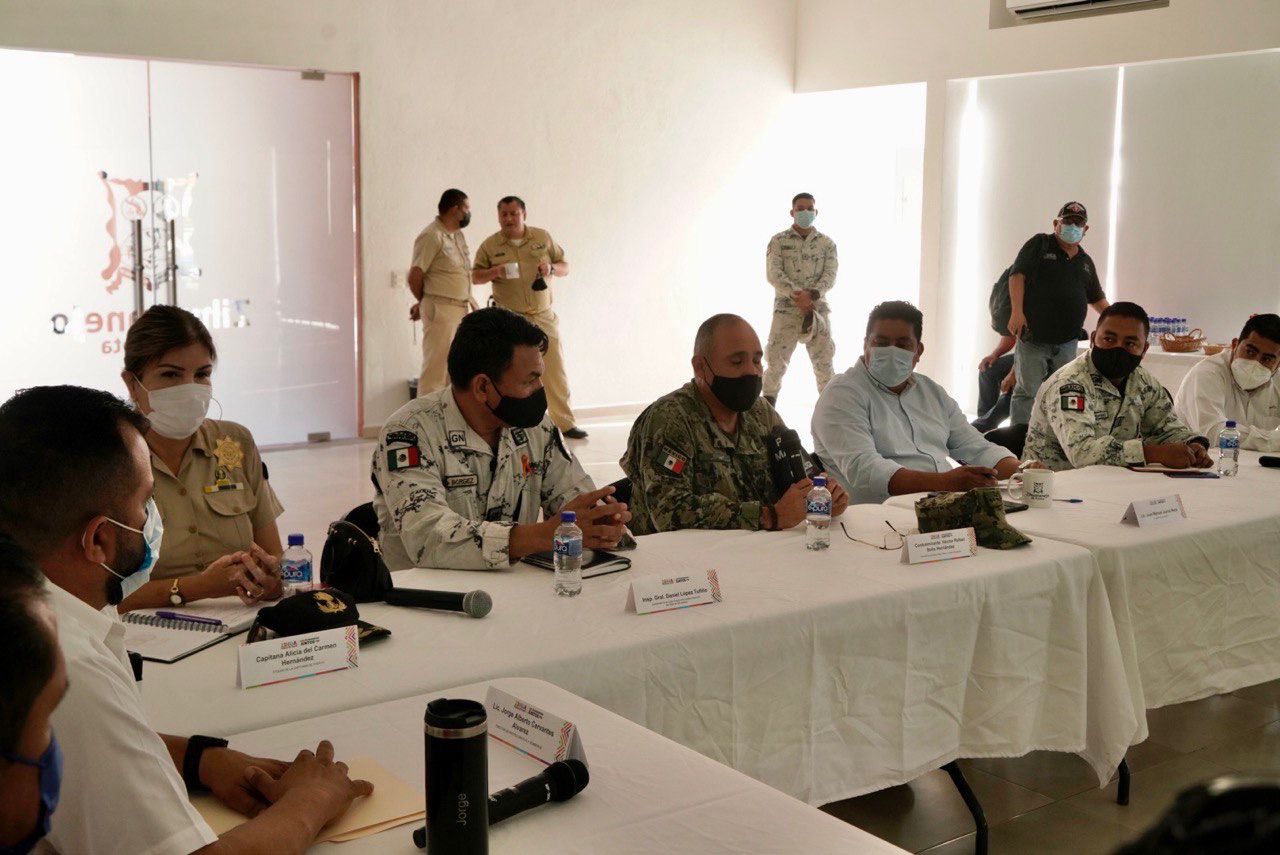 En la reunión, el responsable de la política interna del gobierno municipal transmitió un saludo del alcalde Sánchez Allec y el agradecimiento a los representantes de la Secretaría de la Defensa Nacional, Secretaría de Marina, Guardia Nacional, Protección Civil del Estado, Aeropuerto Internacional, que en coordinación con áreas de la administración pública local participaron en acciones de atención a la problemática generada en Zihuatanejo de Azueta por los fenómenos hidrometeorológicos del presente año.