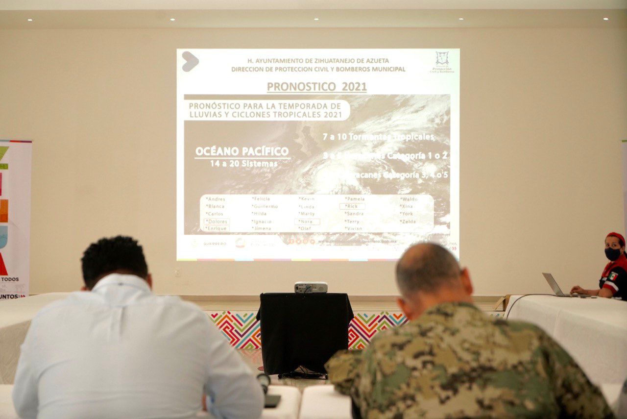 Por indicaciones del presidente Jorge Sánchez Allec y en su representación, el secretario del Ayuntamiento, Juan Manuel Juárez Meza, encabezó este martes en el Auditorio Zihua la sesión ordinaria del Consejo Municipal de Protección Civil, que contó con la asistencia de autoridades de los tres niveles de gobierno y sirvió para hacer oficial el cierre de la temporada de lluvias y ciclones tropicales 2021 en el Océano Pacífico.