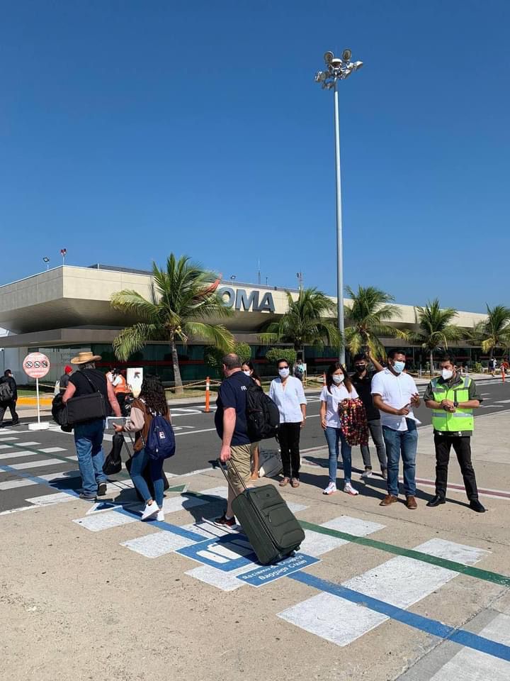 Los pasajeros de la ciudad de Minneapolis tuvieron recepción especial por parte del Gobierno Municipal de Zihuatanejo y la Oficina de Convenciones y Visitantes, quienes les obsequiaron souvenirs y amenizaron su llegada con mariachis.