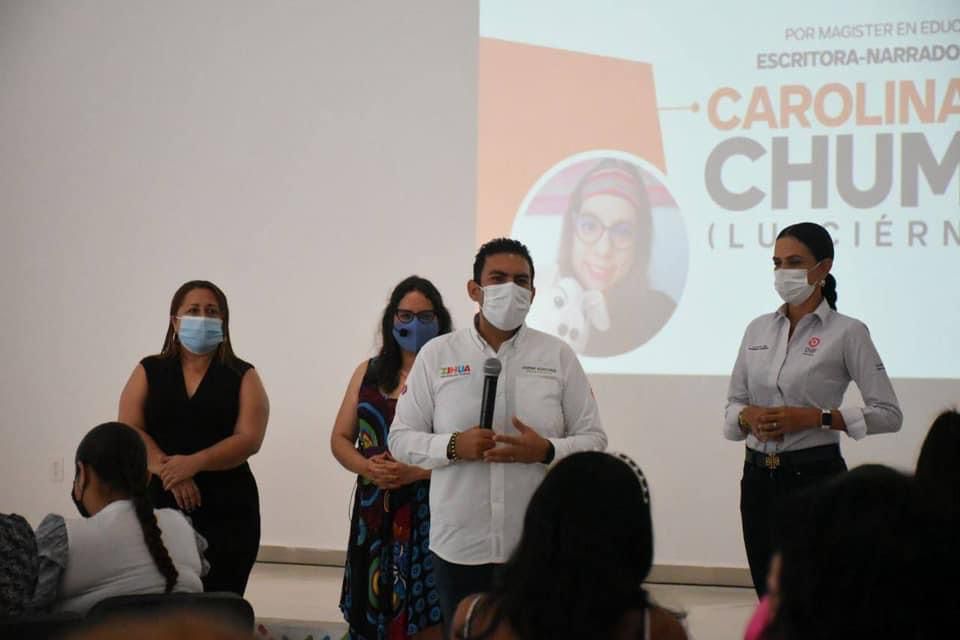 Cabe destacar que tanto el presidente Jorge Sánchez Allec, como su esposa Lizette Tapia Castro, presidenta honoraria del DIF Municipal, reconocieron y agradecieron que la maestra en Educación, Carolina Jeri Chumbe, haya venido desde Perú para impartir parte de sus vastos conocimientos en Zihuatanejo, a través de las actividades del Gran Festival de Cuentos, en beneficio de alumnos y maestros de educación básica.