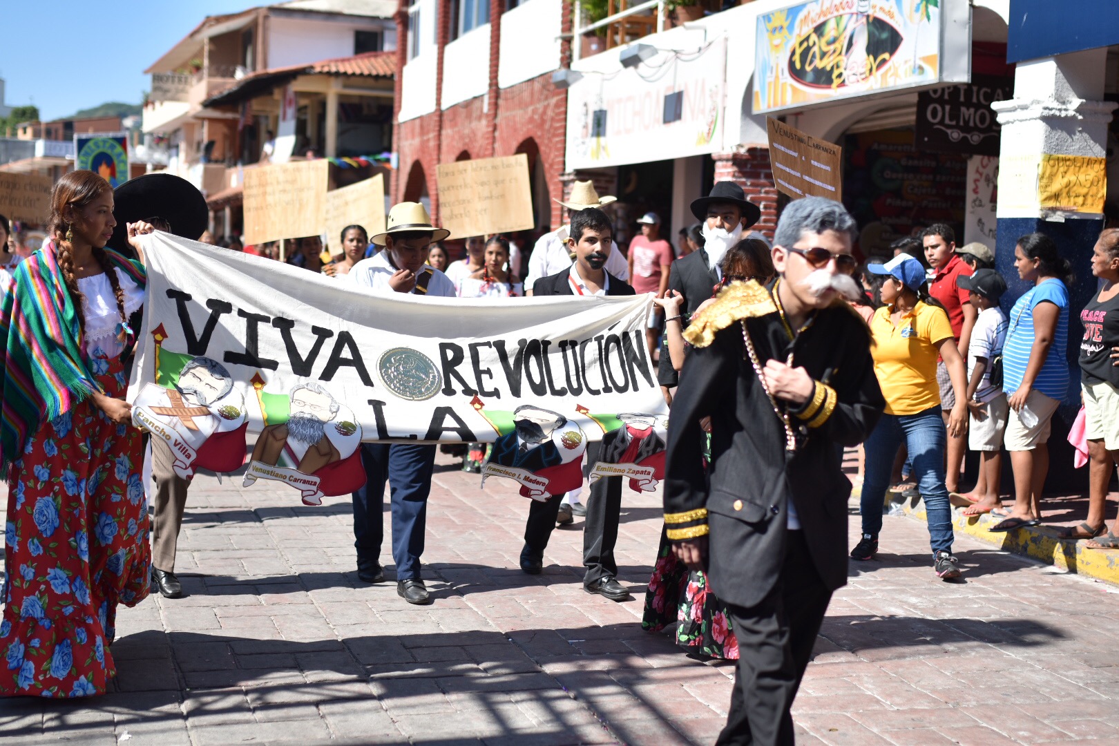 Zihuatanejo, Gro.- El Presidente municipal Jorge Sánchez Allec, en compañía de su esposa Lizette Tapia Castro, presenciaron el desfile cívico-deportivo conmemorativo al 108 aniversario del inicio de la Revolución Mexicana. Desfilaron 4, 190 participantes de 39 contingentes, siendo todo un éxito, pues desde hace varios años no se había desarrollado un evento de tal magnitud, principalmente con cientos de familias zihuatanejenses presenciando por las principales calles de la ciudad.