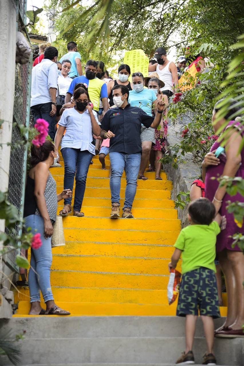 Al continuar cumpliendo su compromiso de fortalecer la infraestructura de Zihuatanejo para contribuir al bienestar de la población, el presidente Jorge Sánchez Allec, acompañado de integrantes de la Comuna y directores municipales, subió este jueves hasta la parte alta de la colonia Benito Juárez, donde entregó el andador Rio Frontera a las familias que habitan en esta zona del puerto, que ahora tiene una mejor imagen urbana y condiciones de mayor seguridad.
