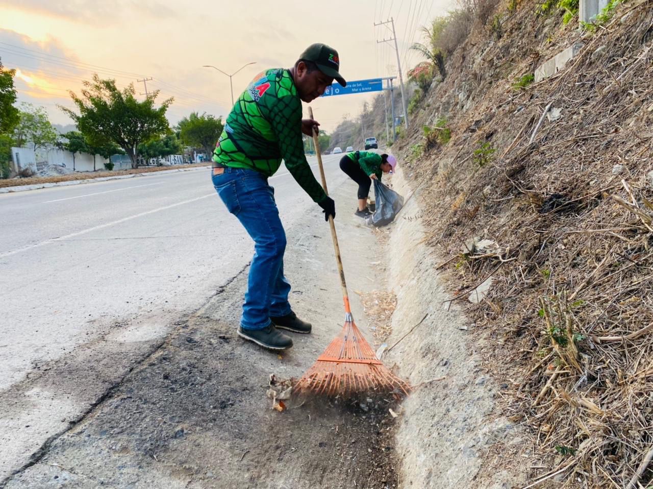 Cumpliendo las instrucciones del presidente Jorge Sánchez Allec de dar atención permanente al boulevard que conduce al Aeropuerto Internacional de Zihuatanejo, personal de la dirección de Servicios Públicos realizó trabajos de limpieza en ambos costados de dicha vía de acceso, además de eliminar 10 basureros clandestinos, lo que permitió retirar un total de tres toneladas de residuos sólidos que fueron confinados al Relleno Sanitario del municipio.