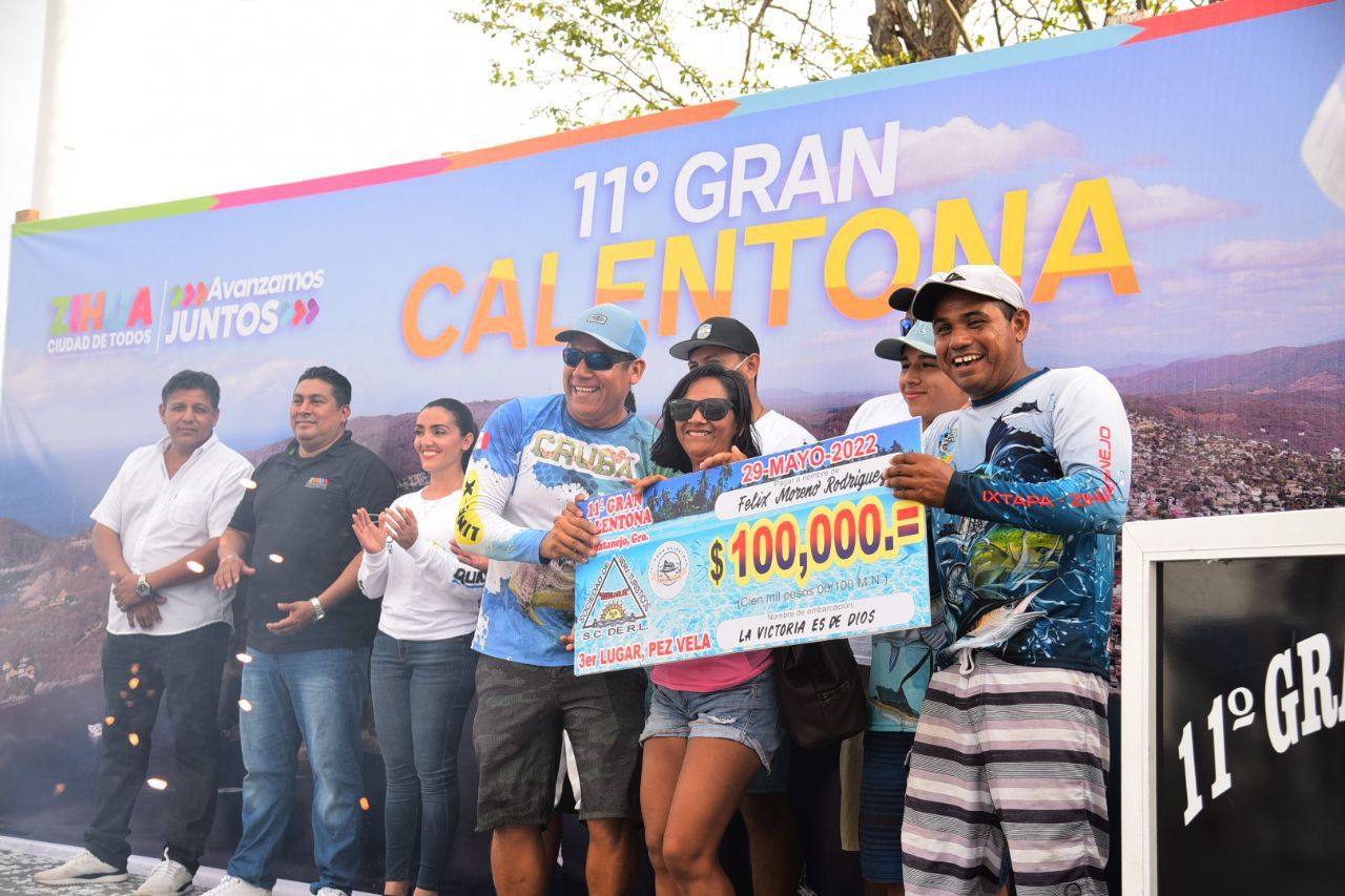 Zihuatanejo se ha consolidado como un destino para la realización de diversos eventos y este fin de semana se llevó a cabo la edición número 11 del Torneo de Pesca la Gran Calentona. El primer lugar fue para la embarcación Hilary con un Pez Vela de 38kg., el segundo lugar para Blanca espuma, mientras que el tercer lugar lo obtuvo la embarcación Victoria.