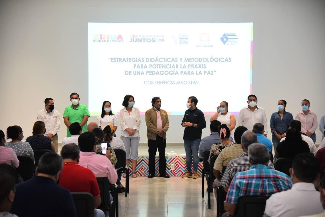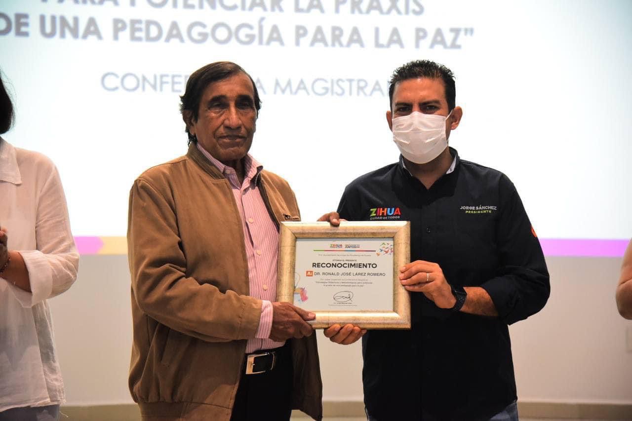 Al recibir este jueves a Ronald José Lárez Romero, presidente de la Asociación de Educadores de Latinoamérica y el Caribe, quien en el Auditorio Zihua impartió la conferencia magistral “Estrategias Didácticas y Metodológicas para Potenciar la Praxis de una Pedagogía para la Paz”, dirigida a docentes de escuelas secundarias de la zona, el presidente Jorge Sánchez Allec refrendó su compromiso de seguir fortaleciendo los esfuerzos por consolidar una convivencia armoniosa entre los diversos sectores de la población del municipio.