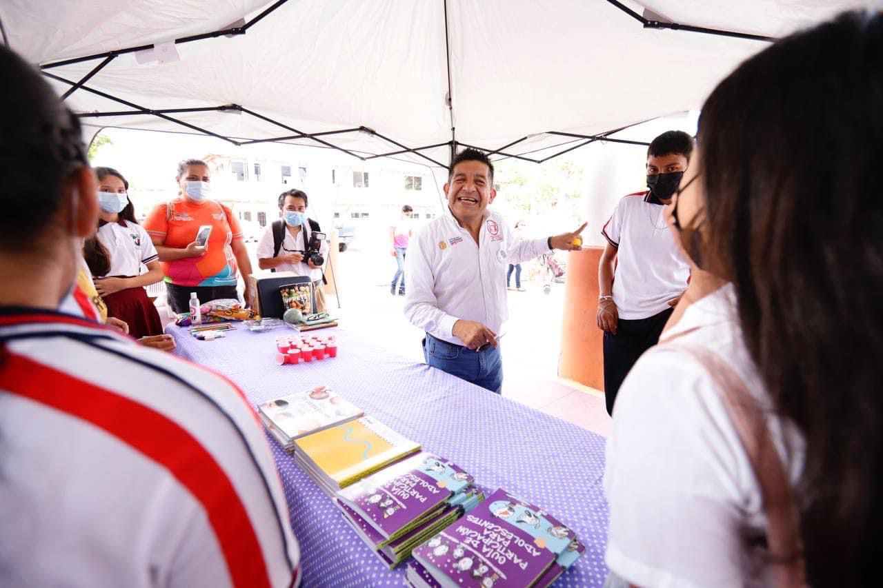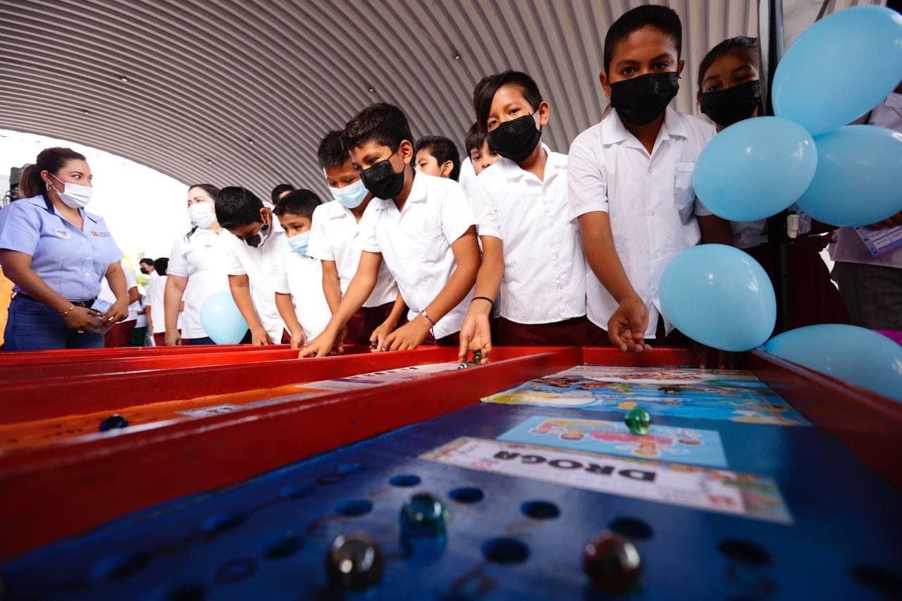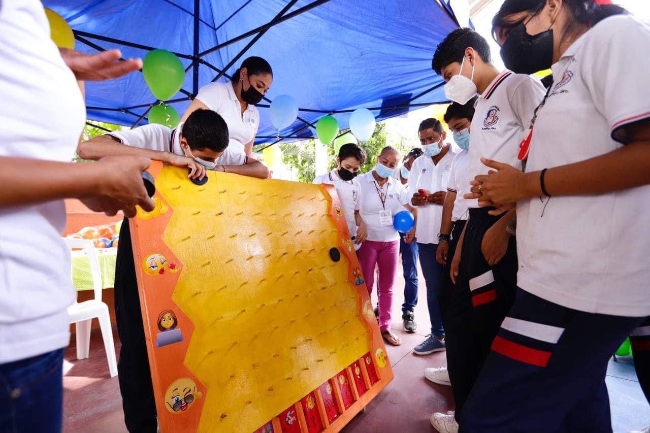 Explicó que los módulos que ahí se instalaron servirían para que los alumnos participaran en distintos juegos, ”en los que ustedes, jóvenes, van a poder aprender de manera muy fácil cómo tenemos que manejar las emociones y cómo tenemos que darle salida a esa emociones”.