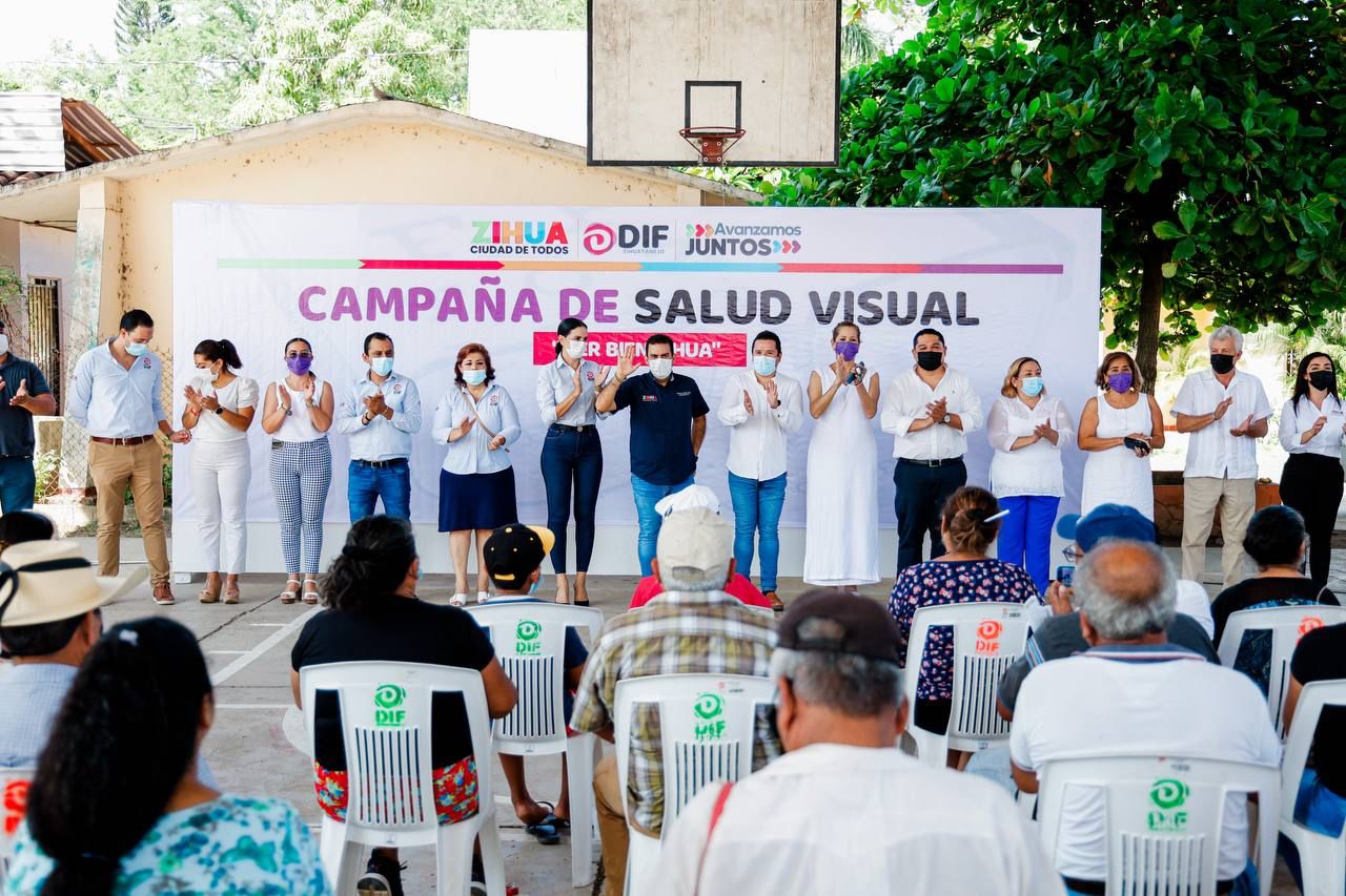 El presidente Jorge Sánchez Allec y su esposa Lizette Tapia Castro, presidenta honoraria del DIF Zihuatanejo, encabezaron este lunes una visita al poblado de Pantla, donde junto con integrantes del Cabildo y autoridades de la comunidad, pusieron en marcha la tercera campaña gratuita de Salud Visual denominada “Ver Bien Zihua”, a través de la cual se dotará de lentes graduados a un número de beneficiarios que puede rebasar las 250 personas.