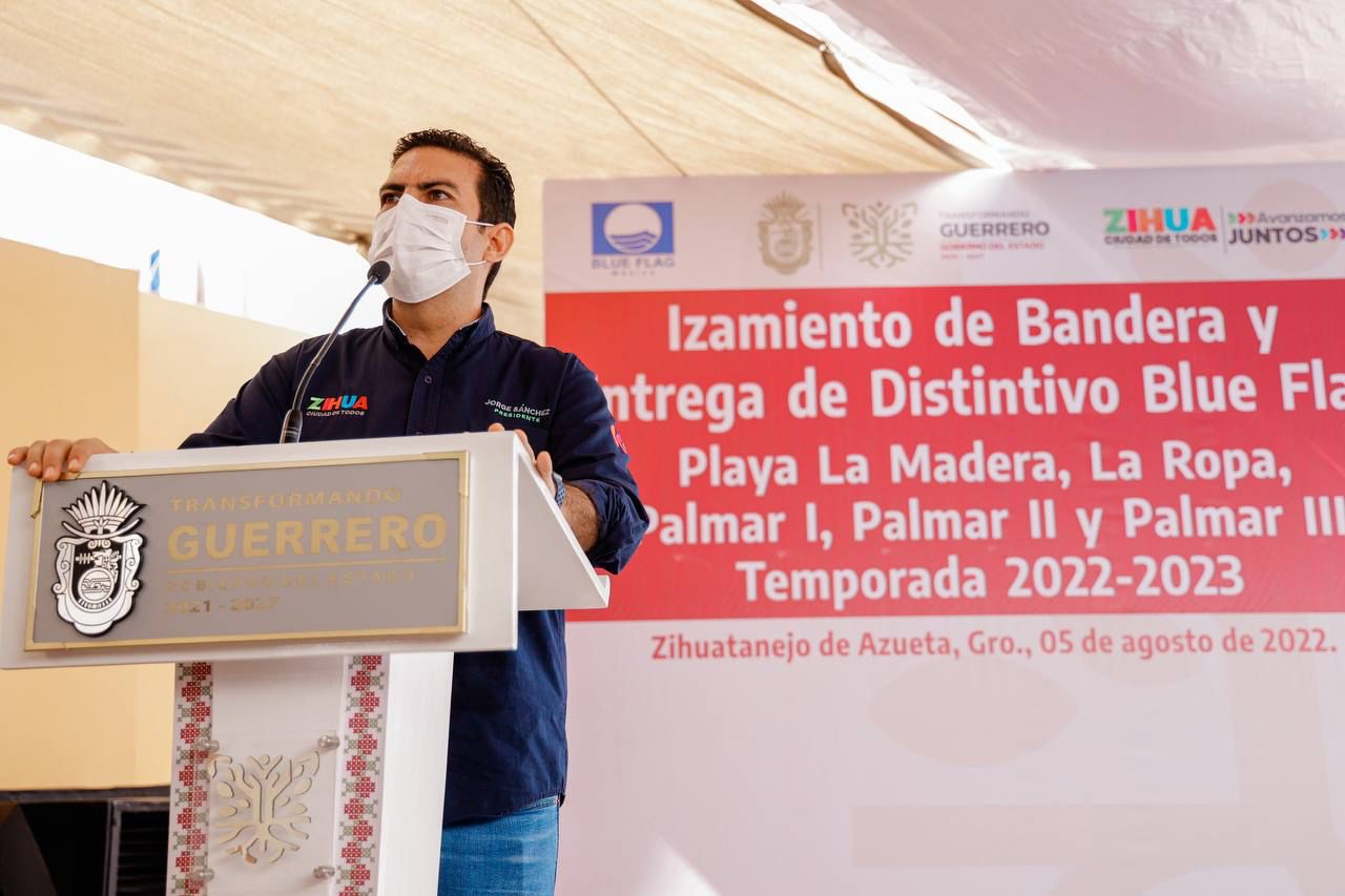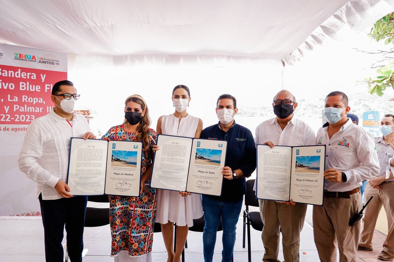 Mientras que el director Ejecutivo de la Fundación para la Educación Ambiental en México, encargada de otorgar la Certificación Blue Flag, Joaquín Arturo Díaz Ríos, informó que en Ixtapa-Zihuatanejo las playas con esta distinción son La Madera, La Ropa, El Palmar I, II y III, las cuales suman más de tres mil metros lineales de la franja de arena del doble destino turístico.