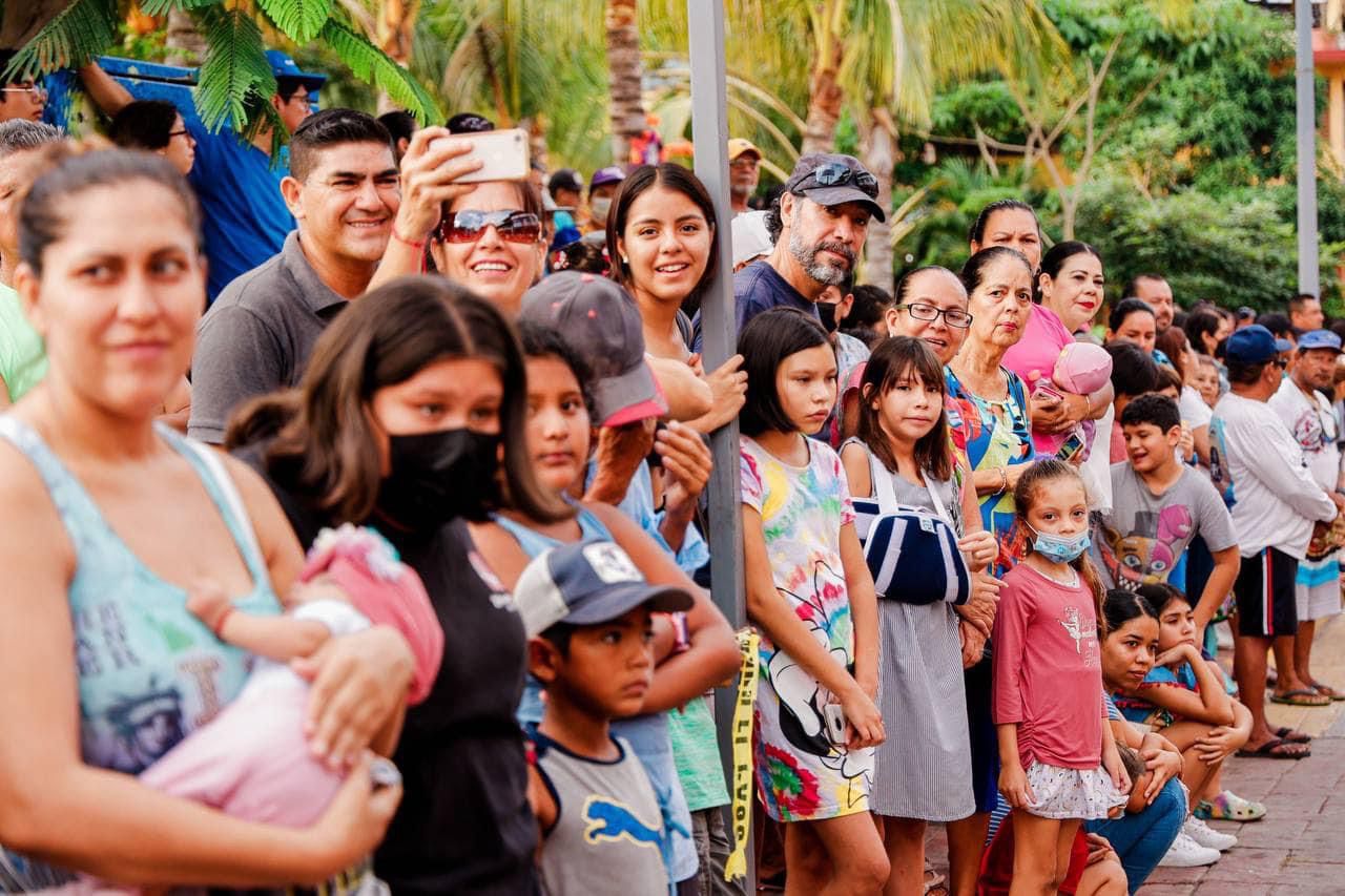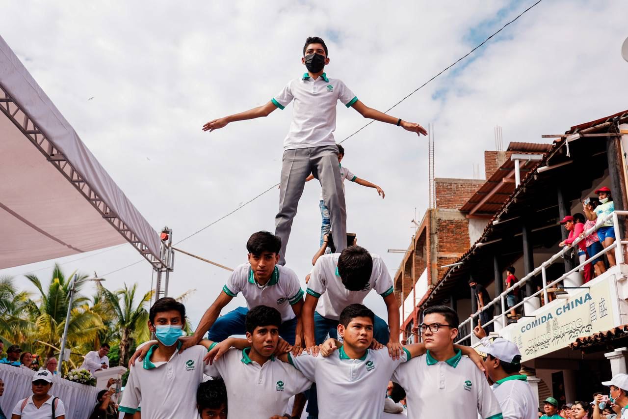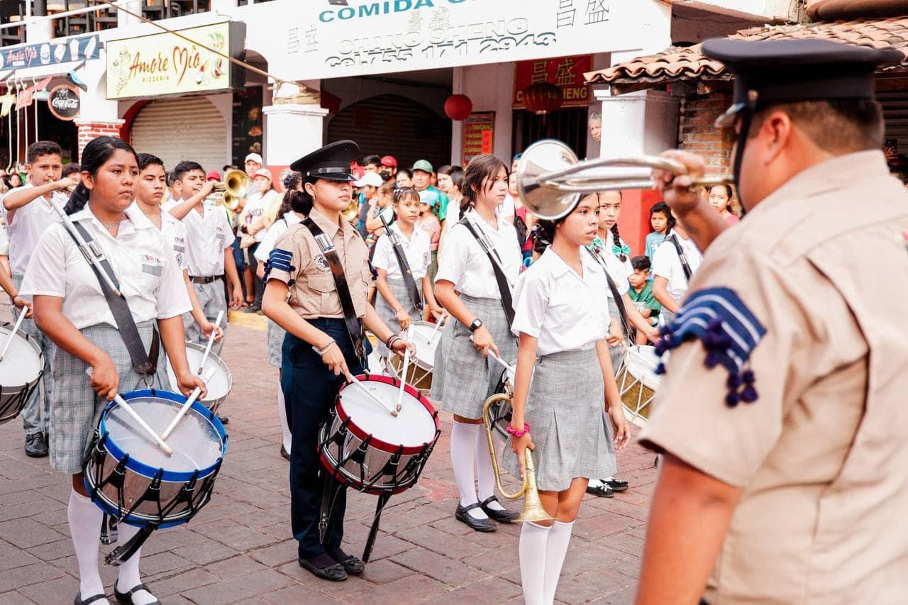 El presidente Jorge Sánchez Allec, junto con su esposa Lizette Tapia Castro, autoridades militares, integrantes de la Comuna y directores municipales, pudieron constatar este domingo desde el presídium instalado frente a la cancha municipal del puerto, que el desafile conmemorativo del 112 Aniversario del Inicio de la Revolución Mexicana, se destacó por su gran participación y lucimiento, además de que no se registró ningún incidente durante su desarrollo.