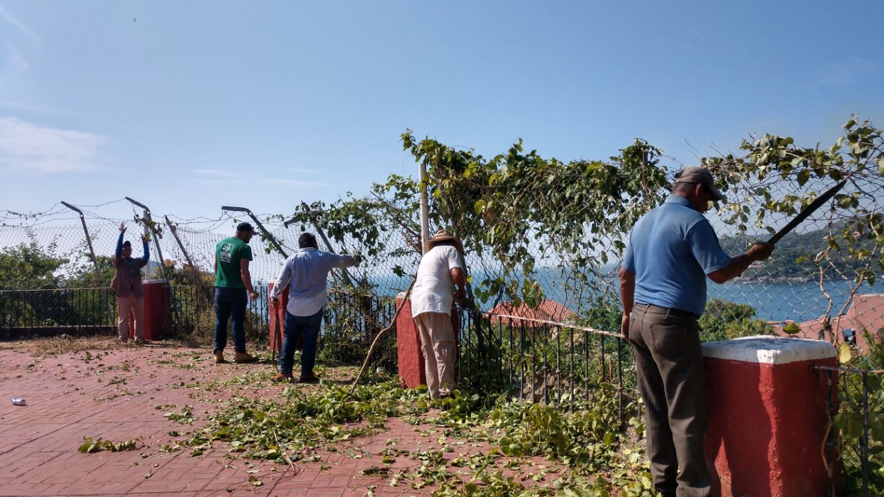 Chapona, poda de arbustos y retiro de maleza se realizó en el Mirador Turístico a la entrada del Centro Integralmente Planeado (CIP) Ixtapa, lugar donde visitantes nacionales y extranjeros disfrutan de la belleza de nuestra bahía y espectaculares puestas de sol.