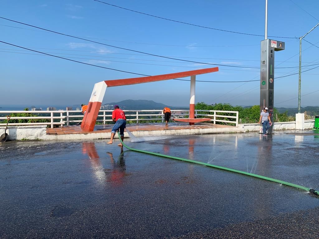 Zihuatanejo, Gro.- Para recibir con la mejor imagen a nuestros visitantes durante la temporada vacacional decembrina, la administración municipal que preside Jorge Sánchez Allec, en coordinación con la Dirección de Servicios Públicos a cargo de David Luna Bravo, realizaron la limpieza integral de los Miradores Turísticos en carretera escénica Playa la Ropa e Ixtapa.