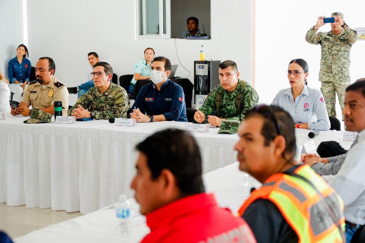 Durante una sesión de trabajo desarrollada en el Auditorio Zihua, el alcalde Sánchez Allec agradeció a las Secretarías de Marina y Defensa Nacional, la Guardia Nacional, Policía del Estado, administración del Aeropuerto Internacional, Protección Civil, Seguridad Pública Municipal y otras autoridades que participaron en la coordinación establecida para atender a la población civil en caso de ser impactada por algún fenómeno hidrometeorológico.