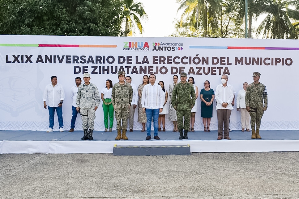 encabezó la Ceremonia Cívica Honores a la bandera en el marco de la conmemoración del LXIX aniversario de la creación del municipio de “José Azueta”.