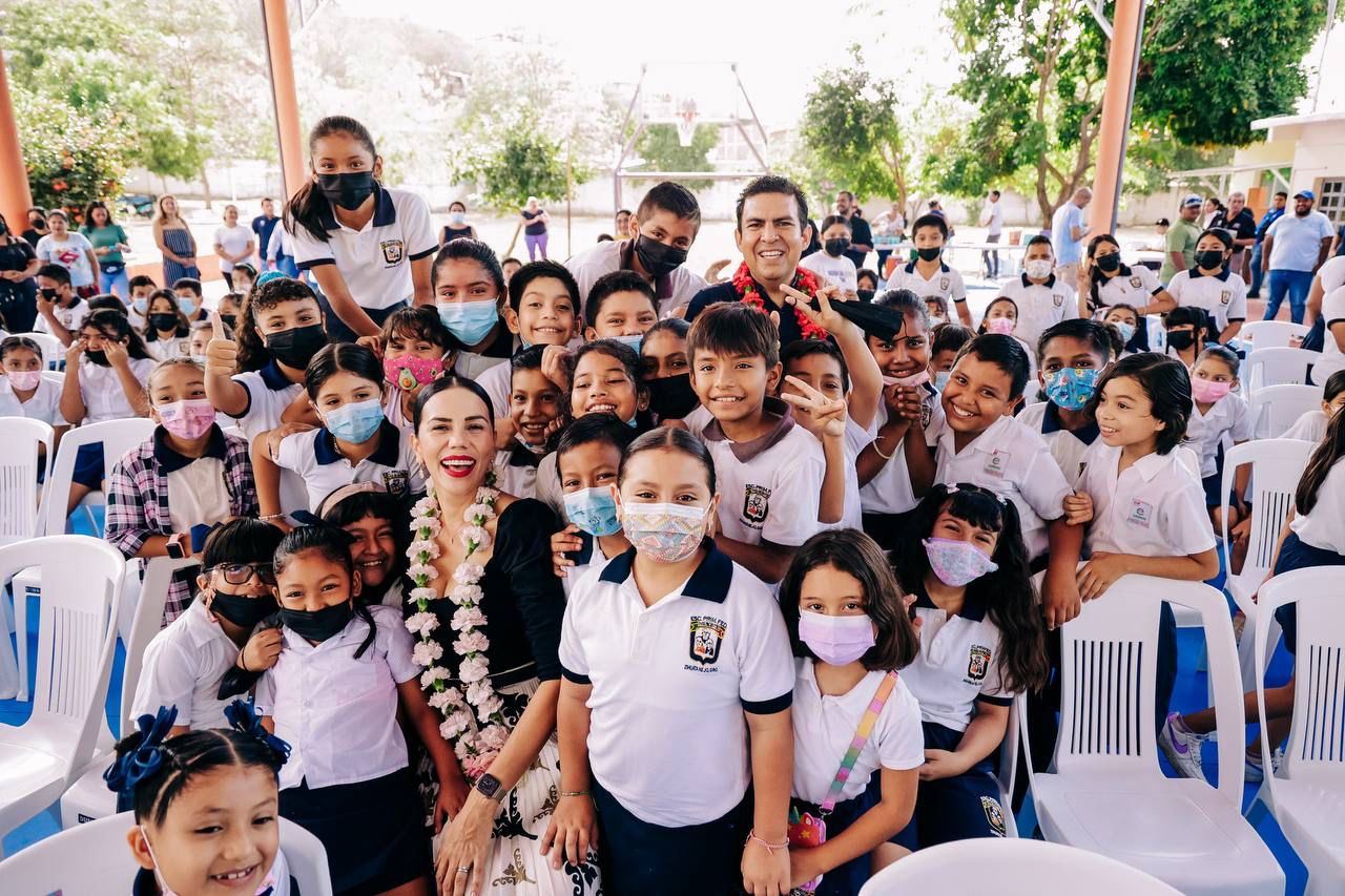 Sobre la obra realizada en esta escuela primaria, el Ejecutivo municipal resaltó que “quisimos no venir a repararla, sino a hacer un trabajo integral, y la verdad es que hoy la hemos transformado, porque lo que queremos es que tengan las mejores condiciones, porque hoy estas niñas y estos niños, ustedes chicos, van a ser el futuro de Zihuatanejo y necesitamos que se preparen bien, necesitamos que estén listos para afrontar los retos que traiga el futuro”.