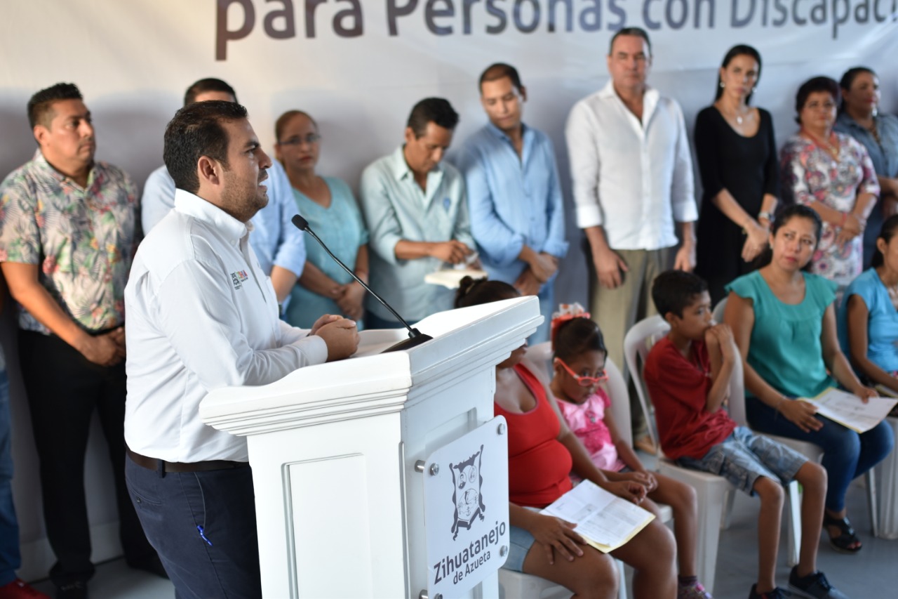 Zihuatanejo, Gro.- El Presidente municipal Jorge Sánchez Allec, en compañía de su esposa Lizette Tapia Castro, encabezaron la Entrega de Apoyos del Programa para Personas con Discapacidad. La gestión la hizo el primer Edil ante el Gobernador del Estado Héctor Astudillo Flores, quien junto a su esposa Mercedes Calvo ratificaron su apoyo para estas personas con alguna capacidad diferente.