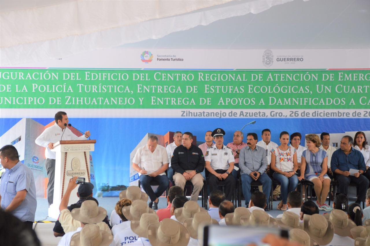 Zihuatanejo, Gro.- Ratificando su solidaridad con Zihuatanejo, el Gobernador del Estado Héctor Astudillo Flores, entregó apoyos a los damnificados del incendio ocurrido el pasado 23 de diciembre, además, inauguró el Centro Regional de Atención de Emergencias de Costa Grande, y entregó nuevo parque vehicular al gobierno municipal, destacando un autobús para el DIF Zihuatanejo que utilizaran personas con alguna discapacidad.