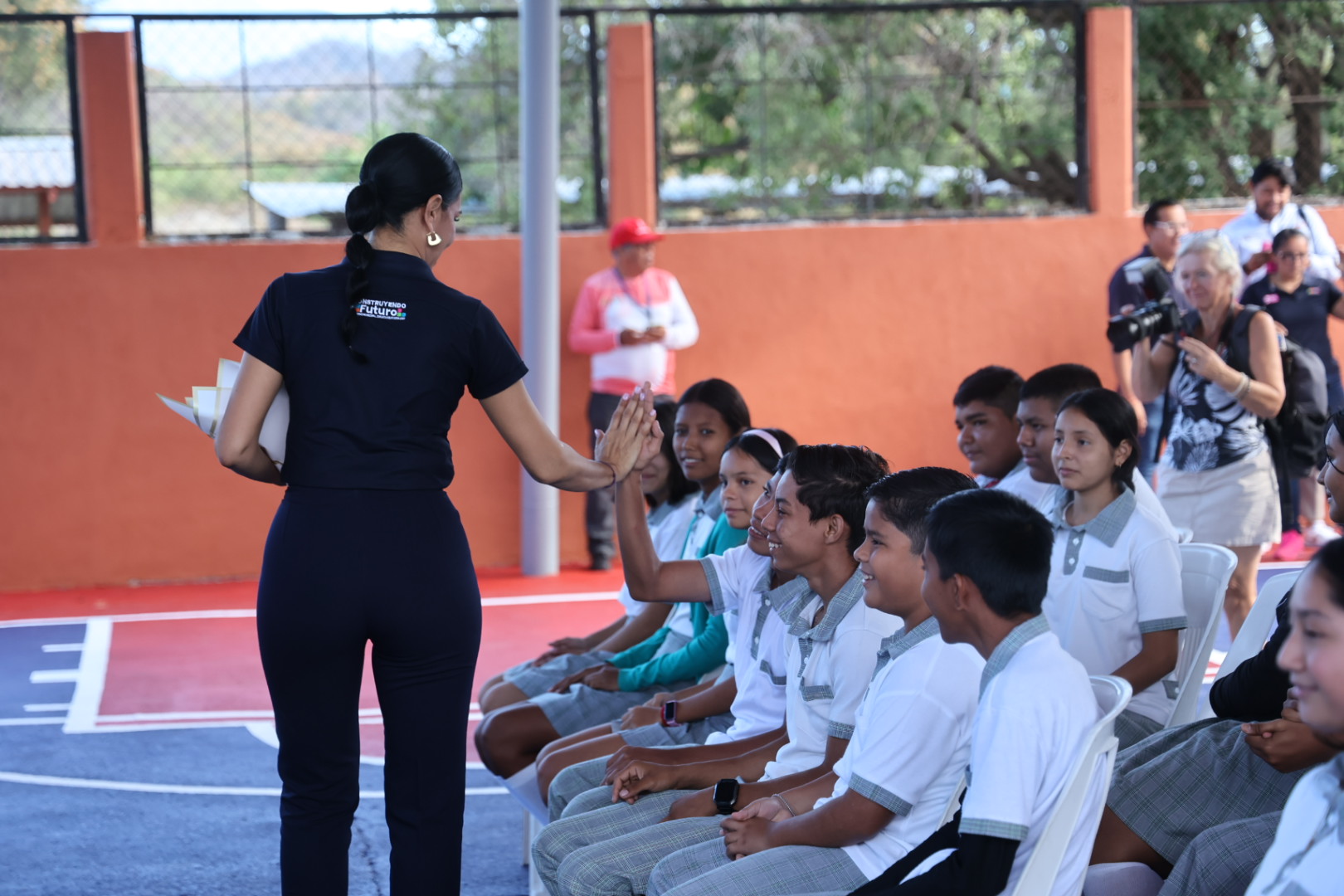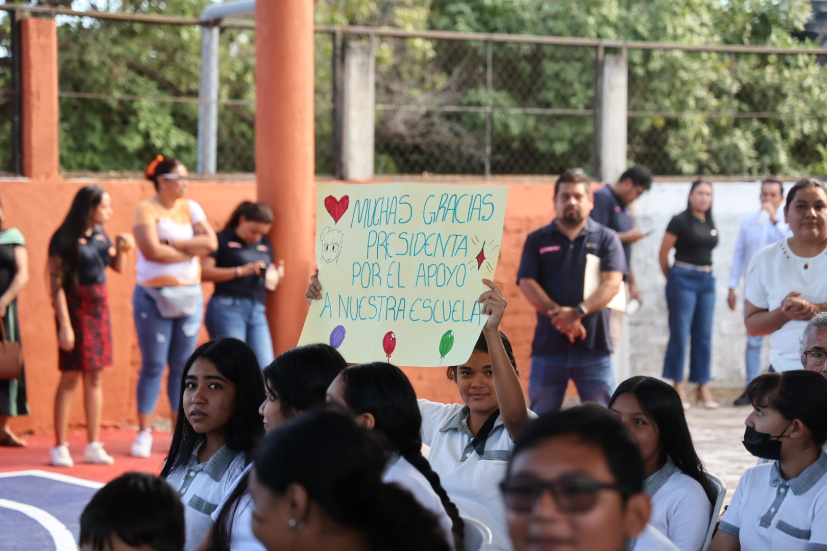 Sobre este nuevo techado, remarcó que “hoy es una obra que les va a dar a ustedes no solamente sombra; les tiene que dar motivación, que los motive a hacer deporte, a hacer artes, a hacer equipo, pero también que los comprometa”, por lo que pidió a los alumnos que cuiden el espacio con el que ahora cuentan, ya que lo dejarán como herencia a las futuras generaciones.