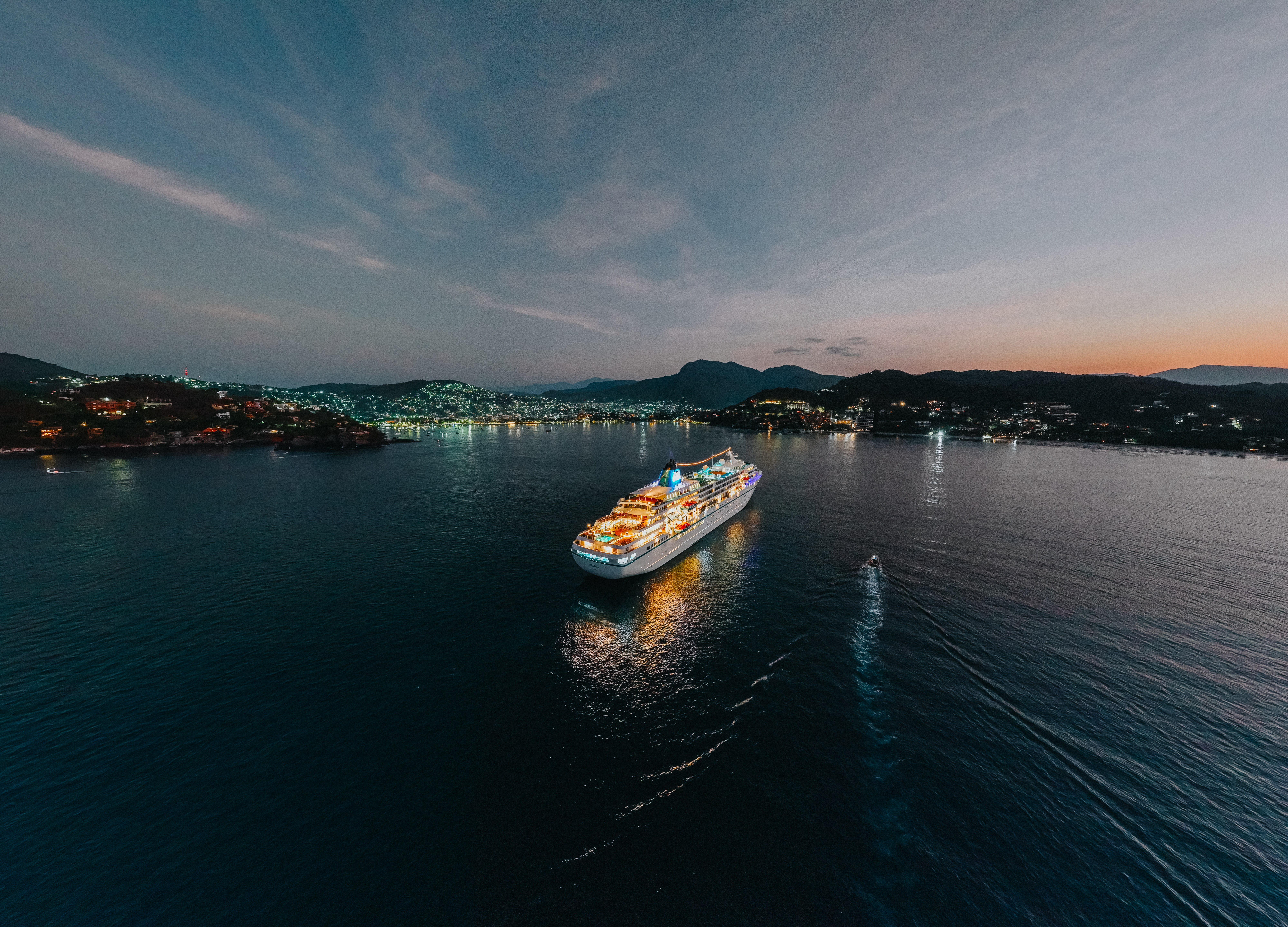 El barco llegó poco antes de las 7 de la mañana procedente de Acapulco y zarpó a las 18 horas con destino a Puerto Vallarta.
