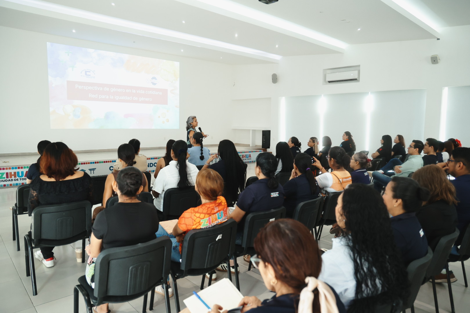 La plática fue impartida por Norma Lilia Olvera Campos, docente del Instituto Tecnológico de la Costa Grande, quien recordó que en 2025 y de acuerdo con una evaluación realizada por un consejo nacional interinstitucional integrado por el CONAPRED, la Secretaría del Trabajo y Previsión Social y el Instituto Nacional de las Mujeres, el municipio de Zihuatanejo recibió la Certificación NMX-R-025 por los logros alcanzados en materia de igualdad de género.