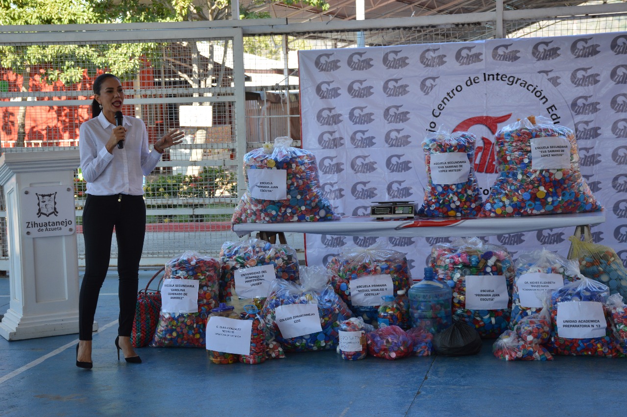 Zihuatanejo, Gro.- El gobierno municipal que preside Jorge Sánchez Allec, a través del Instituto Municipal de la Juventud (IMJUVE), llevó a cabo el Programa de Pesaje de Tapas PET, logrando recolectar 400 mil tapas, con las cuales se realizará un Mural Ecológico en el Parque de la Juventud.