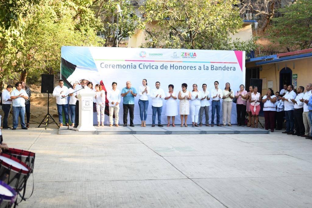 En la escuela Primaria Cuitláhuac ubicada en la colonia 20 de Noviembre se llevó a cabo la primera inauguración tras haber realizado Honores a la Bandera, como cada lunes de primer mes, y donde además Lizette Tapia Castro, Presidente honoraria del DIF municipal entregó paquetes escolares y desayunos a los alumnos.