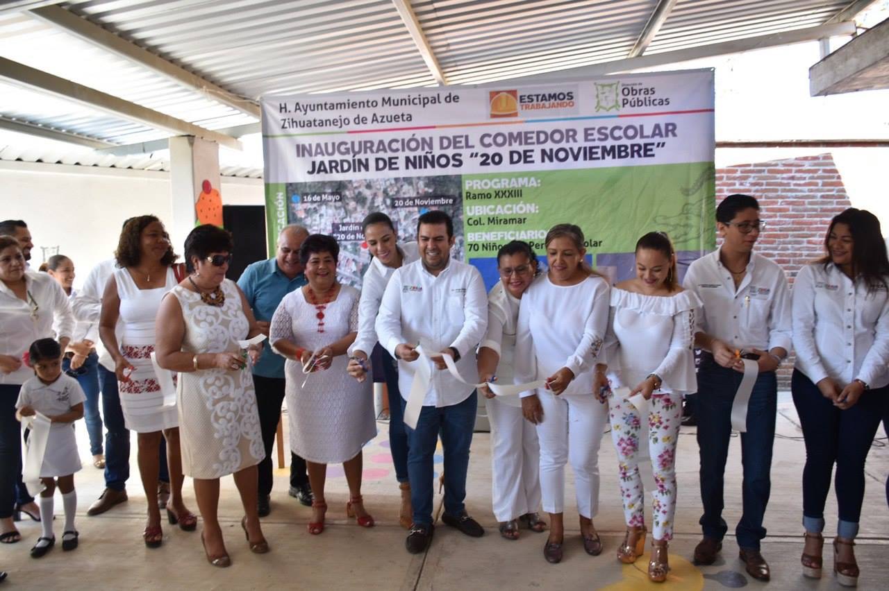 En el marco del programa “Estamos Trabajando” el Presidente municipal Jorge Sánchez Allec, en compañía de síndicos y regidores, inauguró dos comedores escolares para beneficio de 190 alumnos. “Trabajamos para mejorar las condiciones educativas y dignificar los espacios donde los alumnos recibirán sualimentación” afirmó el Presidente municipal de Zihuatanejo.