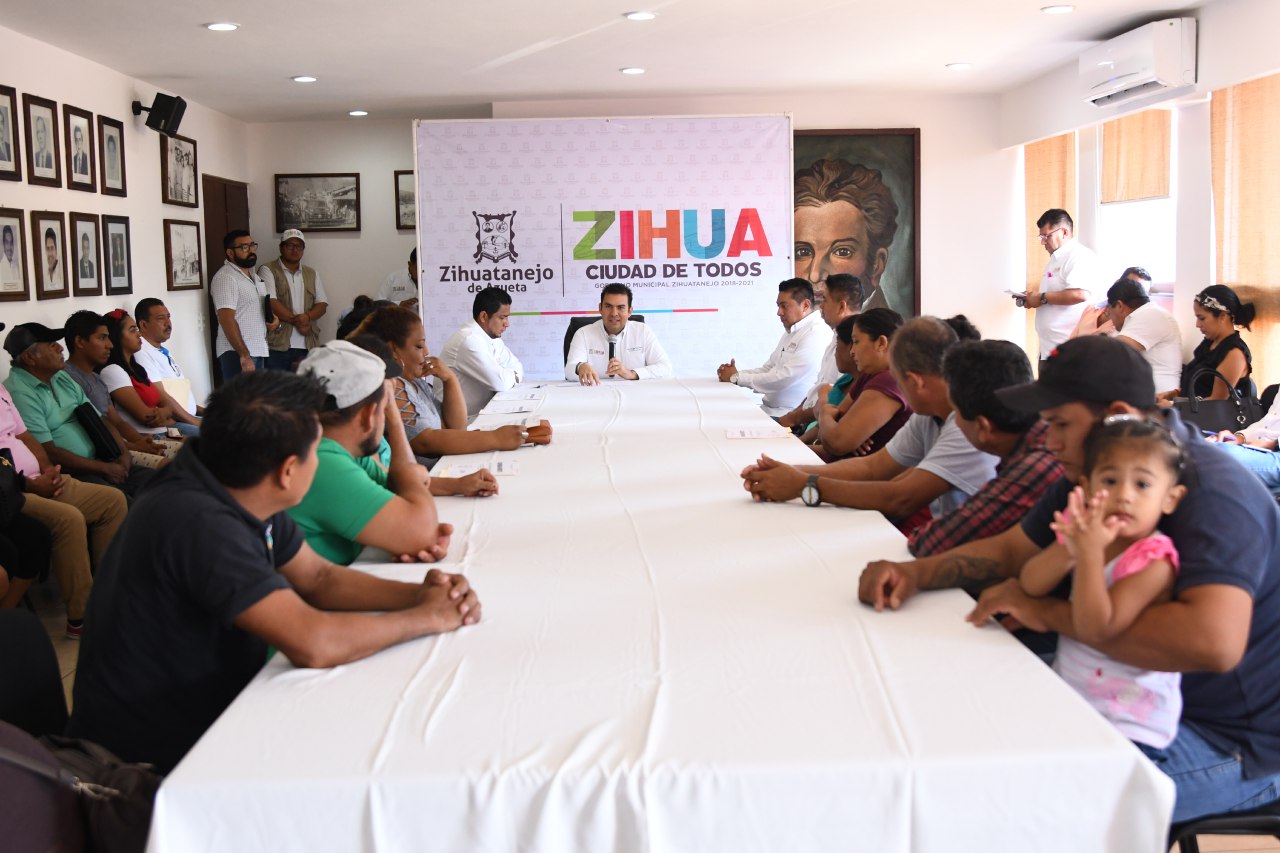 Zihuatanejo, Gro., 12 de noviembre de 2019.- En reunión desarrollada este martes en la sala de cabildos, el presidente municipal, Jorge Sánchez Allec, dio por iniciado el programa Mano con Mano en las colonias 20 de Noviembre, Chula Vista e Ignacio Manuel Altamirano de Zihuatanejo, donde se llevará a cabo la pavimentación de una calle y la construcción de dos andadores que previamente se habían acordado con los habitantes de los tres asentamientos.