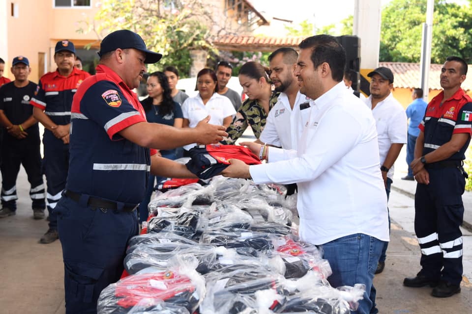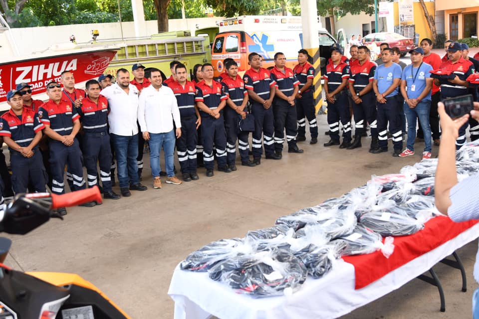 Zihuatanejo, Gro., 26 de noviembre de 2019.- El presidente municipal, Jorge Sánchez Allec, visitó este martes las instalaciones de la dirección de Protección Civil y Bomberos (PCyB), para cumplir con la segunda entrega de uniformes a los 65 elementos de la corporación en lo que va de su gestión gubernativa, además de proporcionar una moto acuática para reforzar el trabajo que los salvavidas realizan en las diferentes playas de Zihuatanejo de Azueta.